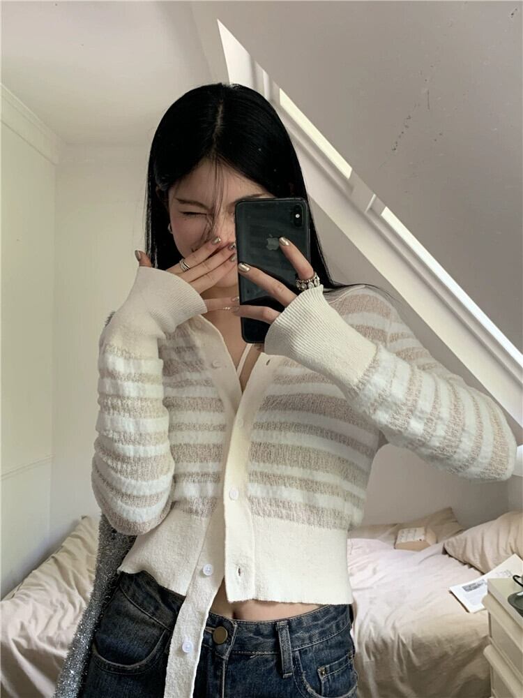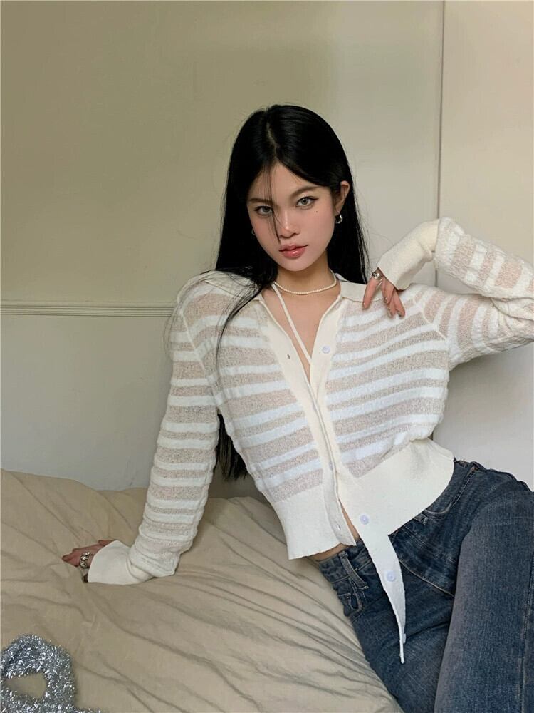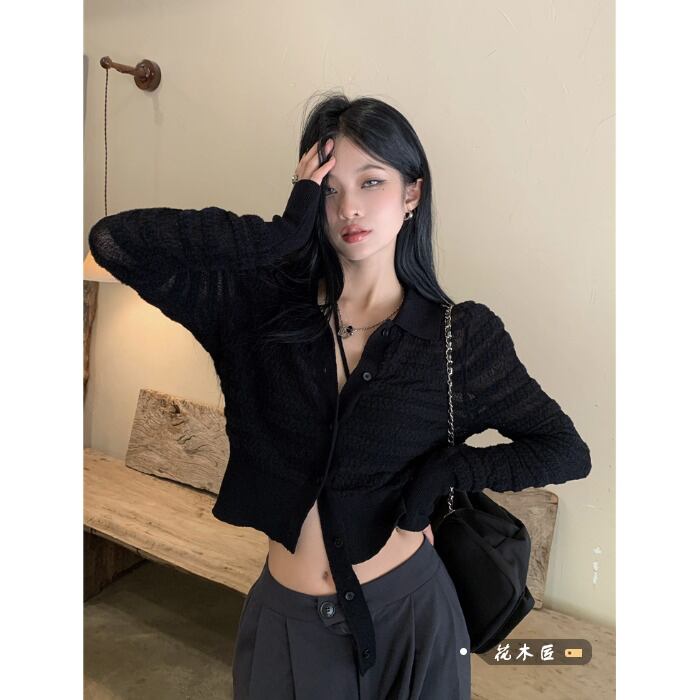 -エンドシックな黒の長袖ニットセーター女性の2023新しい早春の気質スリムショートトップ潮 ロング ブラック スプリング 春物 0921922458372630