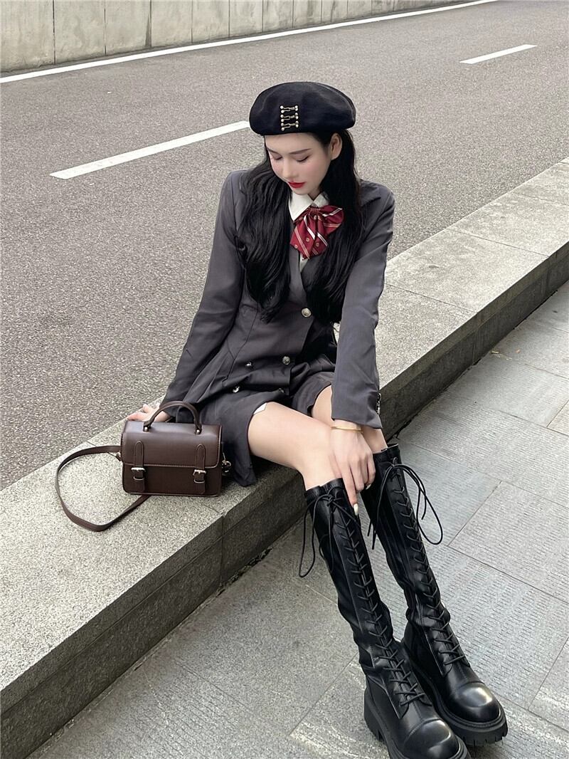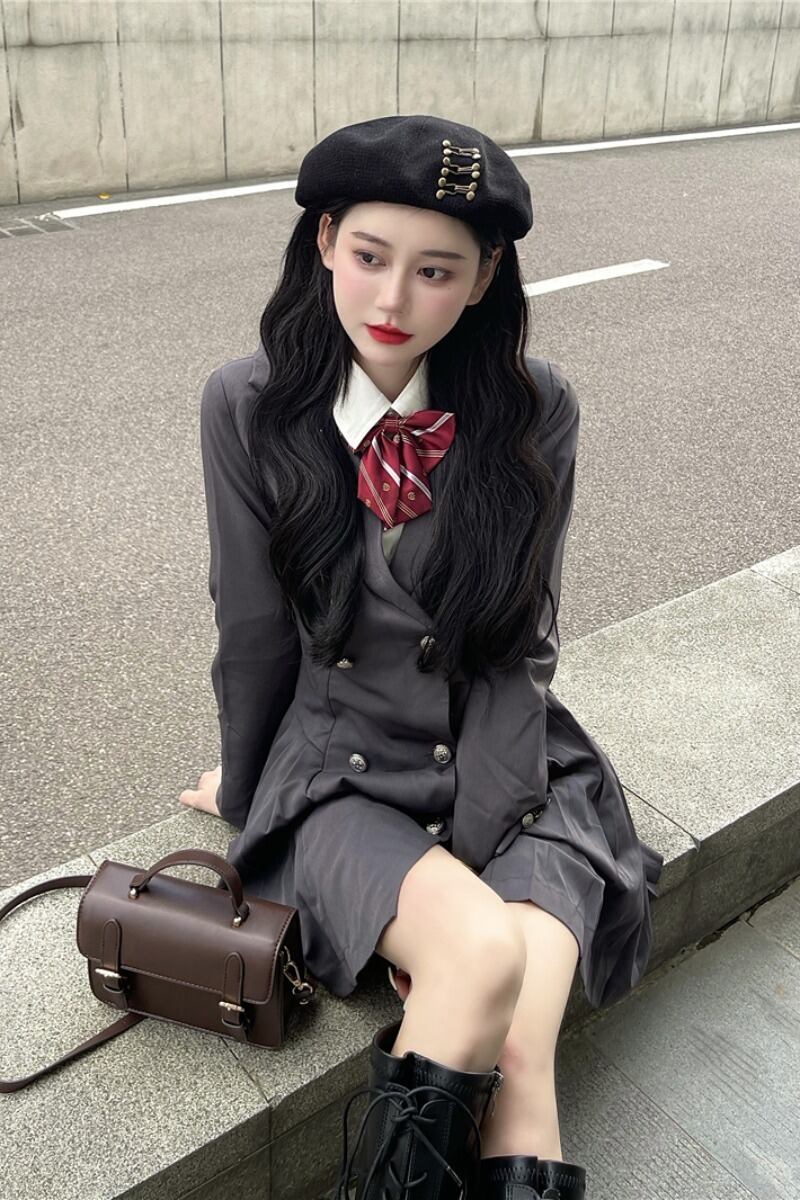 スタイル長袖スーツドレス女性 2023 春の新しいオールマッチデザインセンススリムスリムプリーツスカート ロング スプリング 春物 0921931577352620