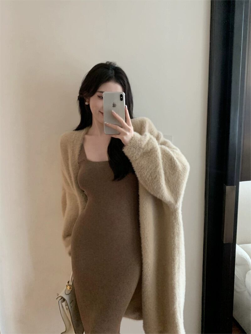ニッチデザイン模造ミンクファールーズニットセーターコート女性春と秋 2023 新しいオールマッチミッドレングストップス スプリング 春物 オータム 秋物 0921969550886090