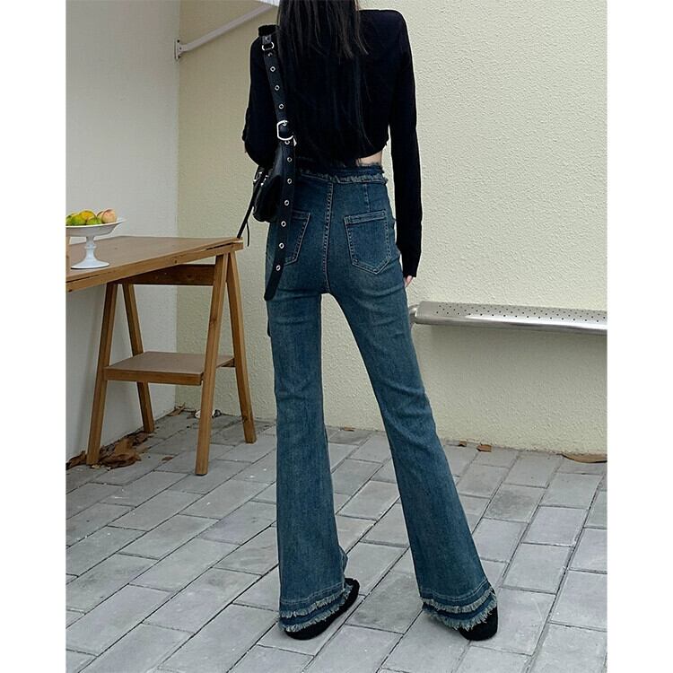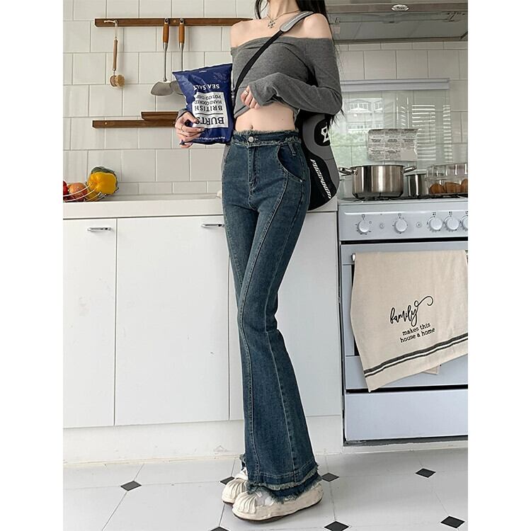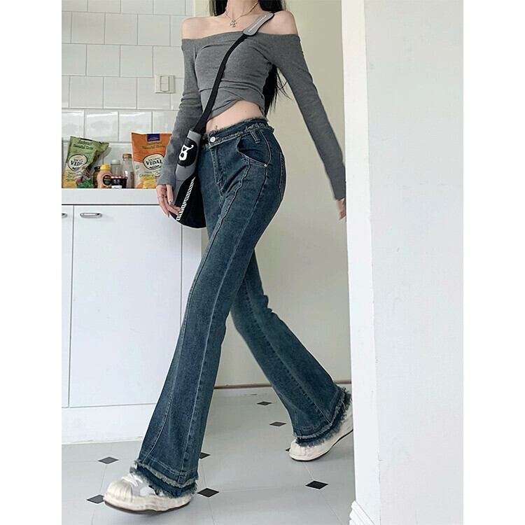 スパイスガールズレトロウエストローエッジマイクロ発売ジーンズ女性の夏 2023 ウエストスリム弾性ストレートパンツ エラスティック 伸縮 サマー 夏物 0921931065784562