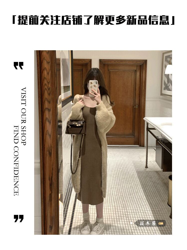 春と秋の雰囲気模造ミンクウールニットカーディガン女性の 2023 新しい怠惰な風ミッドレングスオールマッチセーターコート スプリング 春物 オータム 秋物 0921984355159654