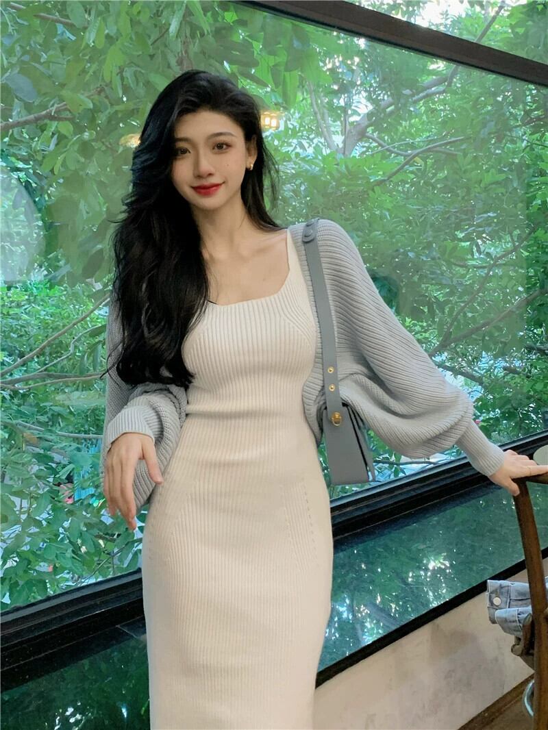 穏やかで気質的なブルーニットカーディガン女性の春と秋の2023新しいスタイルのバック中空ネクタイ長袖セータージャケット ロング スプリング 春物 オータム 秋物 0921982003234256