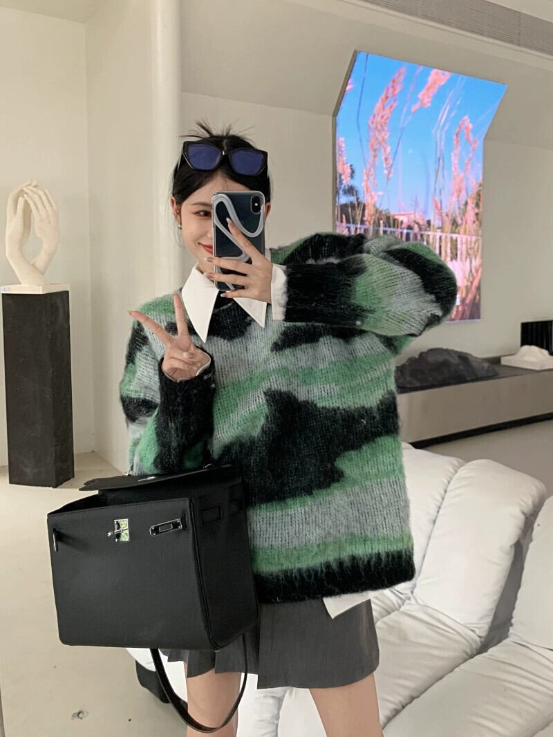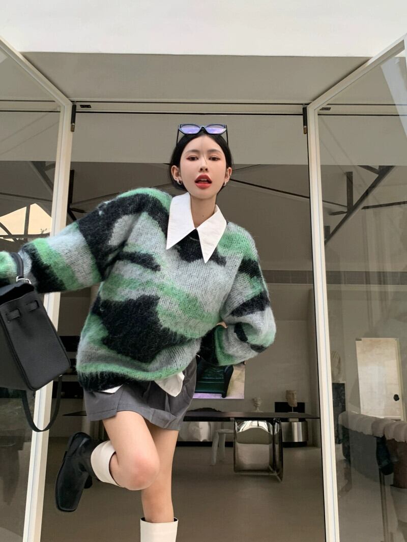 ニッチなデザインセンスカジュアルルーズプルオーバーセーター女性 2023 春の新バージョンのオールマッチニットトップイン スプリング 春物 092197993091022