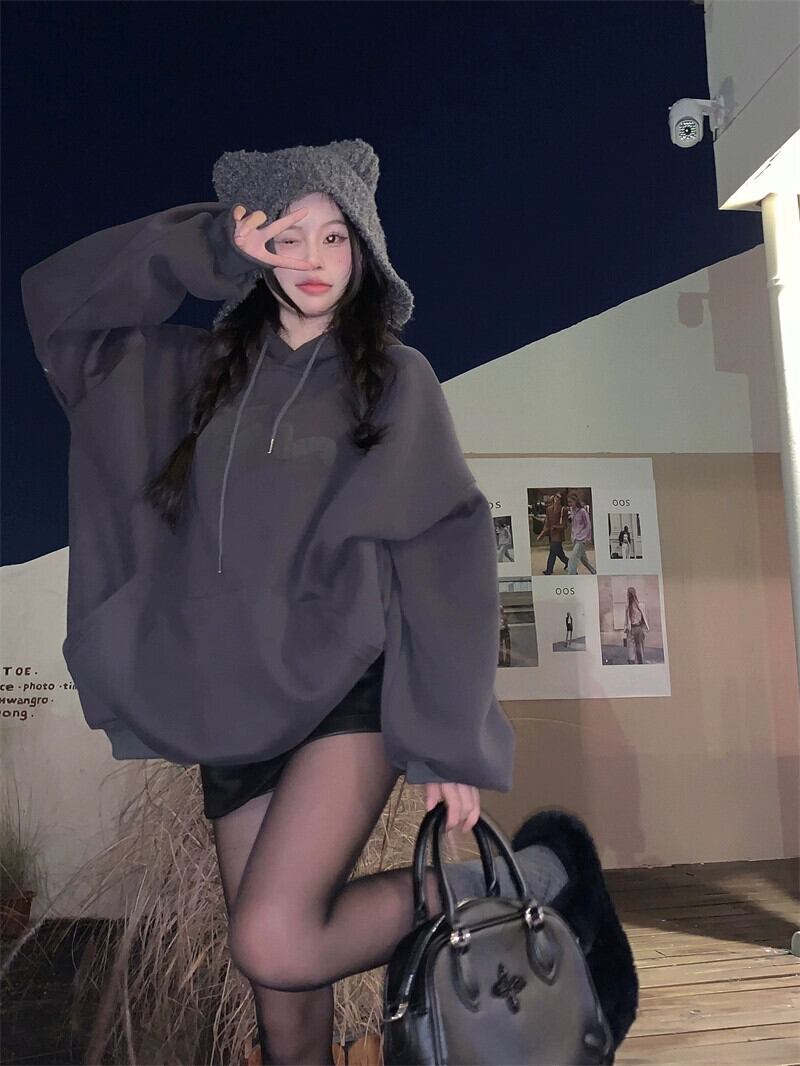 バージョンデザインセンスプラスベルベットルーズフード付きセーターレディース春と秋2023新しいオールマッチルーズスリムトップイン スプリング 春物 オータム 秋物 092192564364544