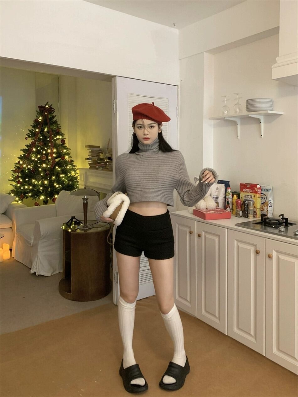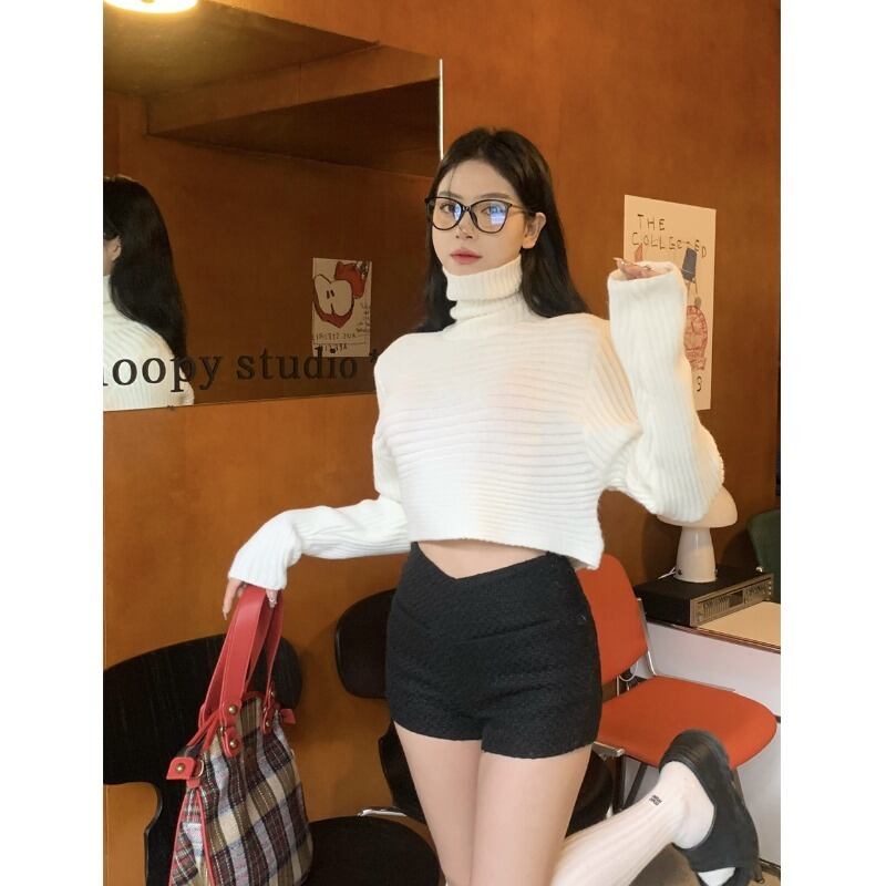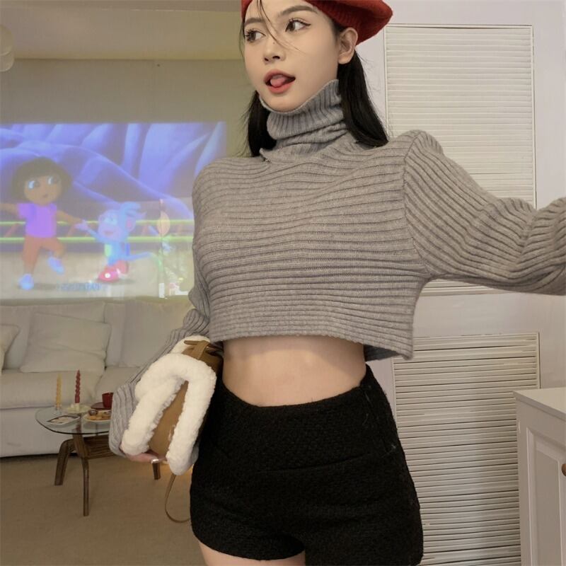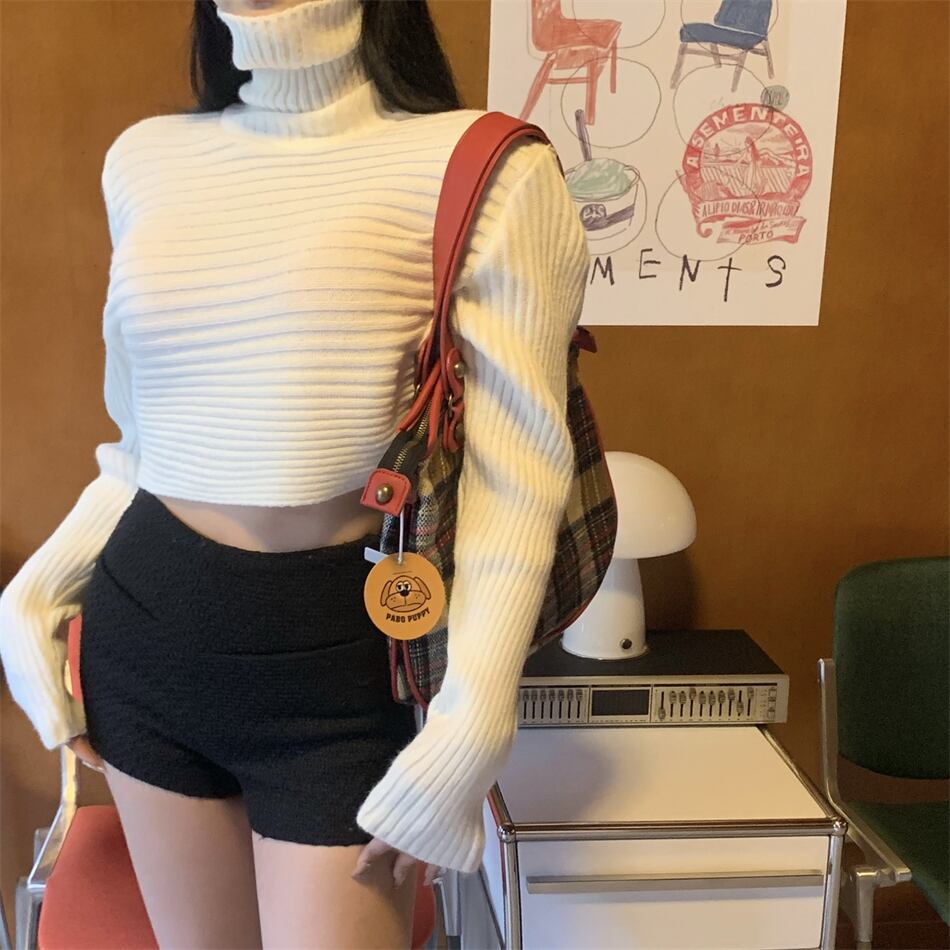 トレンディなニッチレトロタートルネックセーター女性の冬 2023 新しい無地オールマッチ長袖ショートニットセータートップ ロング ウィンター 冬物 ソリッドカラー 0921986053939966