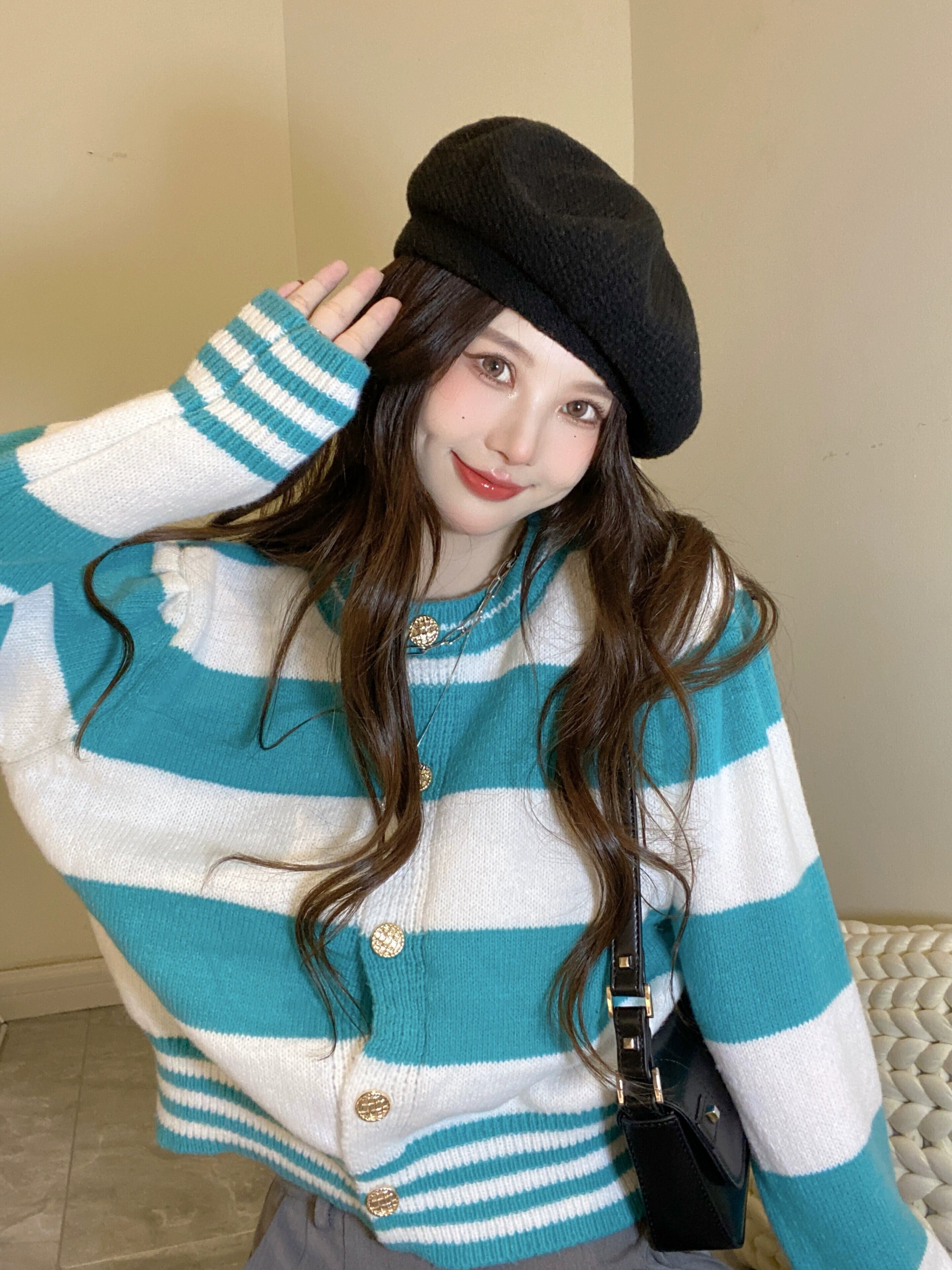 シンプルなファッションのストライプのラウンドネックショートセータージャケットの女性の春の2023新しいルーズニットトップ潮のバージョン スプリング 春物 Oネック 0921957116507011