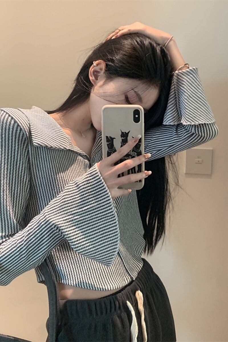 ホットラペル長袖シャツ女性の夏の 2023 新しい日焼け止めカーディガンデザインセンスニッチスリムショートトップ ロング サマー 夏物 0921933795482443