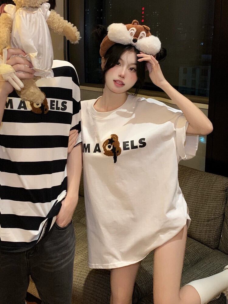オーバーサイズベアルーズ半袖Tシャツレディース2023年夏新作ミドル丈スリムボトムストップス サマー 夏物 0921942237408409