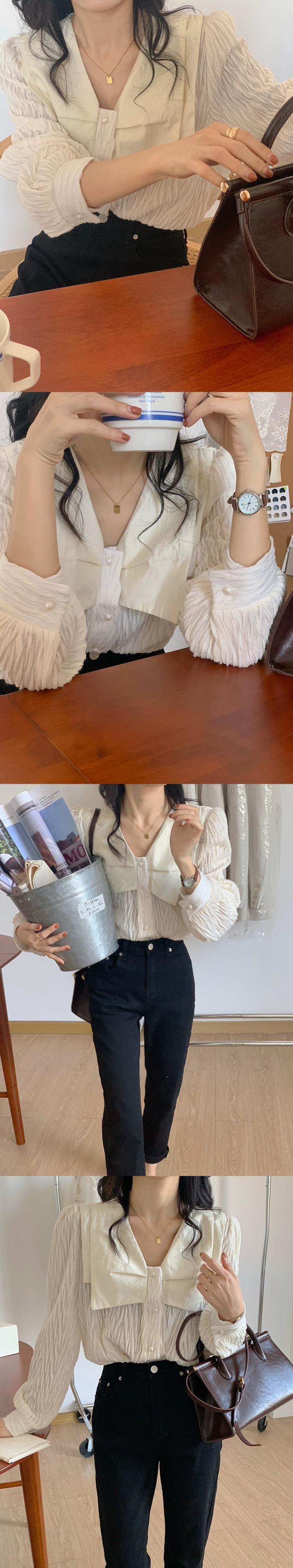 フレンチスタイルの小さな香りプリーツダブルカラーシャツ女性の2023春と秋の新しい気質パフスリーブシャツトップ スプリング 春物 オータム 秋物 0921954343634104