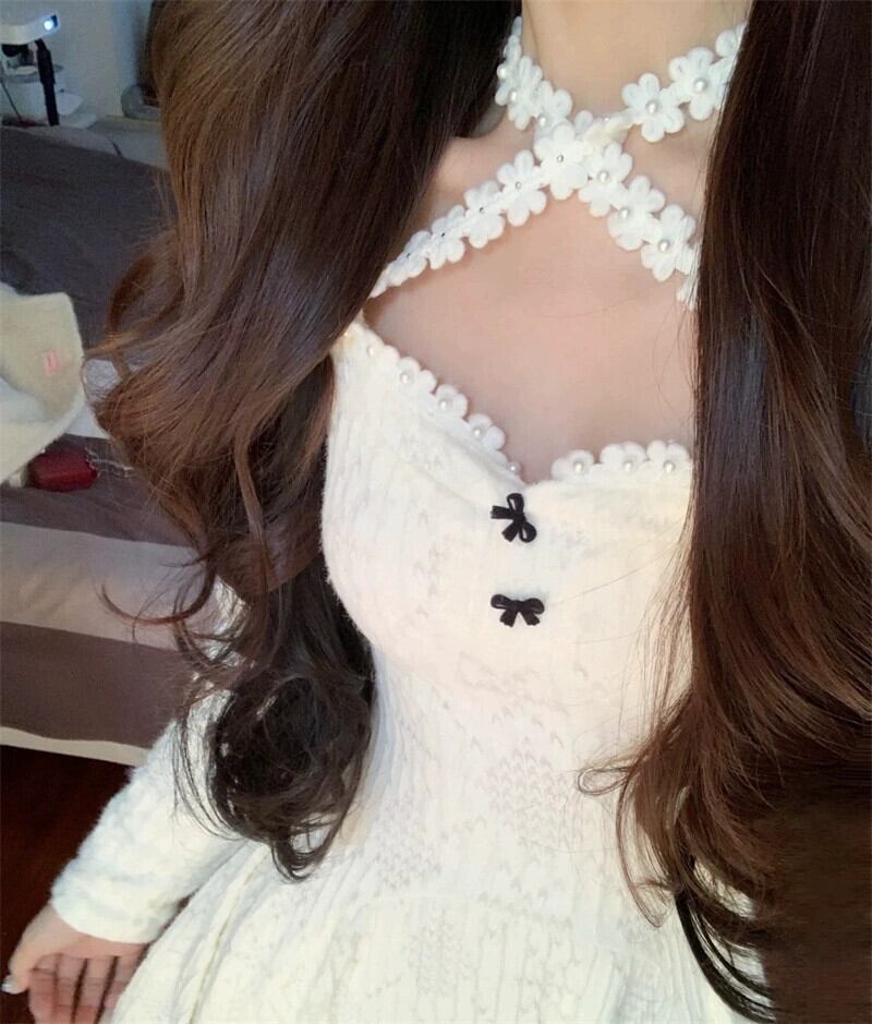 甘いデザインセンスホルターネックドレス婦人服2023春新作ウエスト痩身甘いAラインスカート 大人ガーリー スウィート キュート カジュアル スプリング 春物 0921937243910407