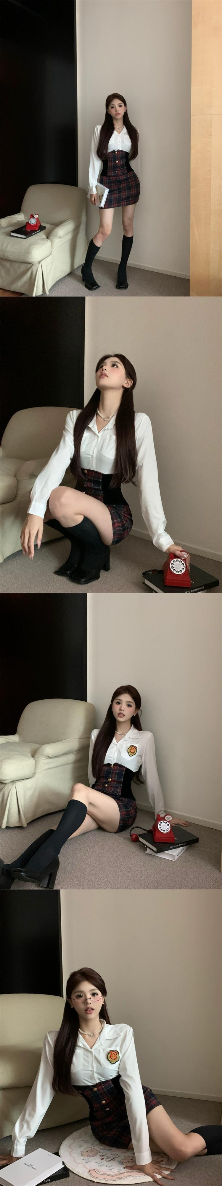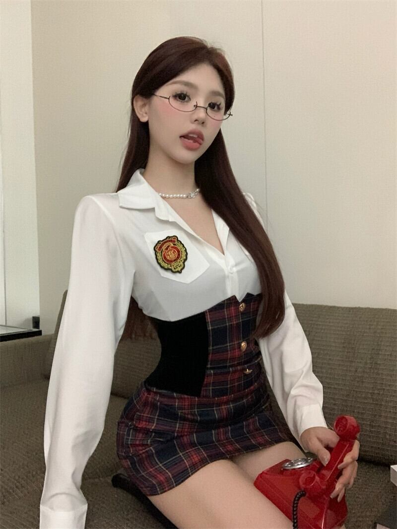 アメリカン スパイス ガールズ スーツ レトロ チェック柄 セクシー ウエスト バッグ ヒップ スカート 春スタイル シャツ 2 点セット スプリング 春物 0921973304875279