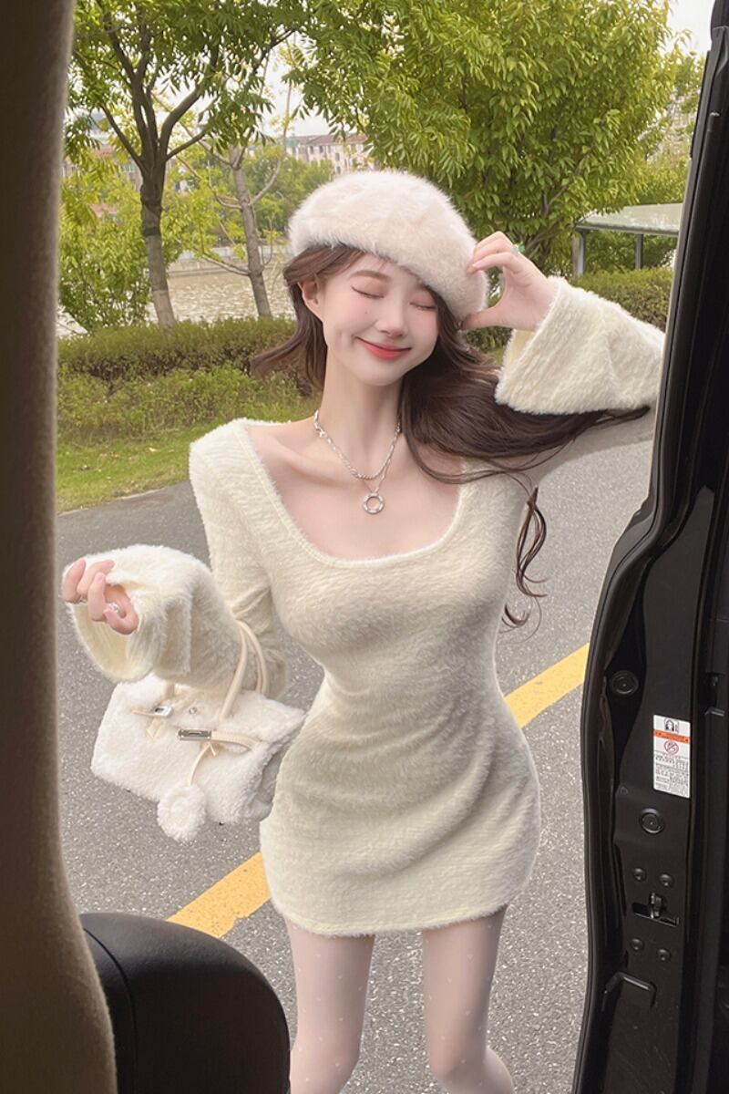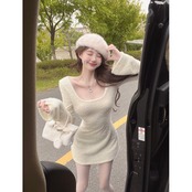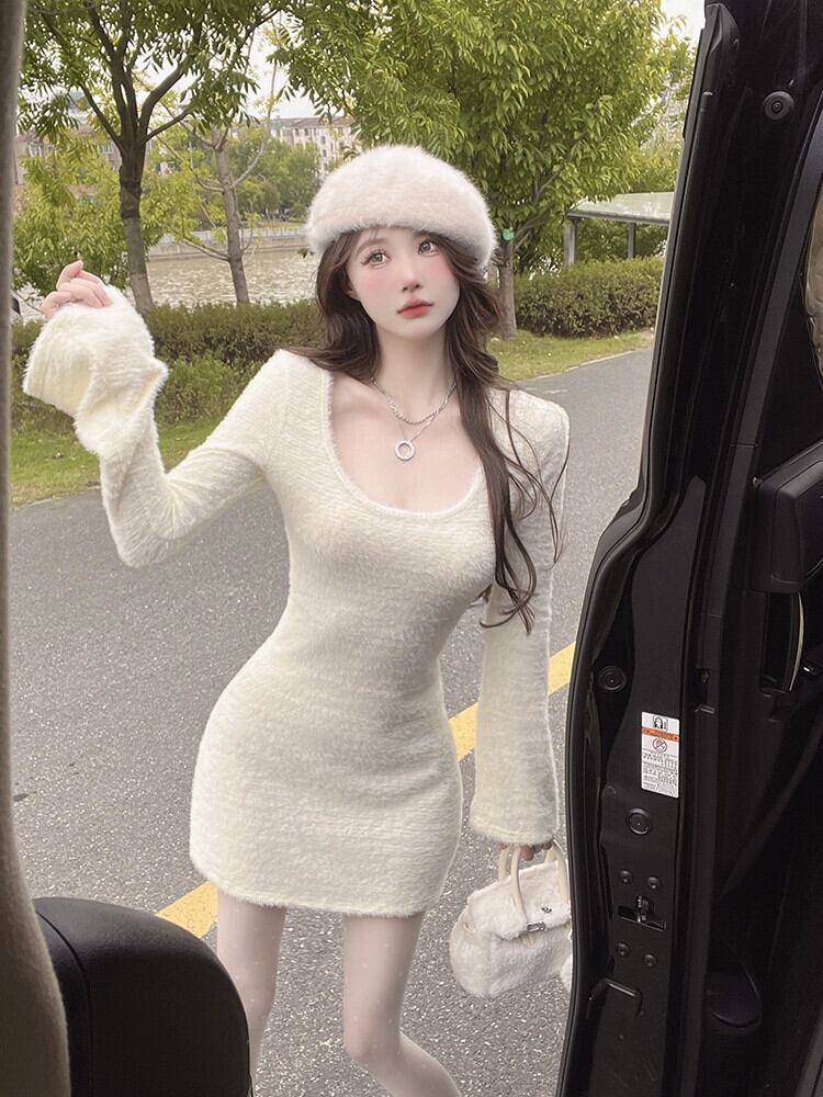 純粋な欲望スパイスガールトランペットスリーブニットドレス女性の冬 2023 スタイル西洋スリムウエストスリムパッケージヒップスカート ウィンター 冬物 0921919982825534