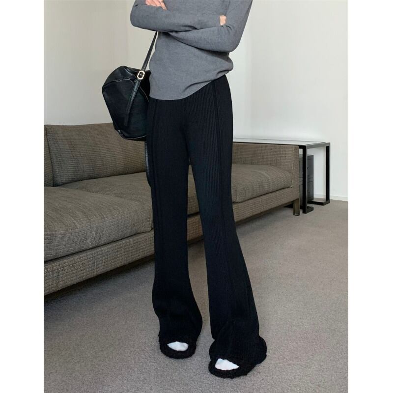 バージョンの肥厚ドレープニットカジュアルパンツ女性の冬 2023 新しい怠惰な風ファッションオールマッチルーズマイクロパンツ ウィンター 冬物 0921979992616887