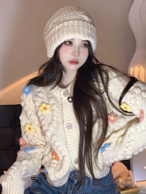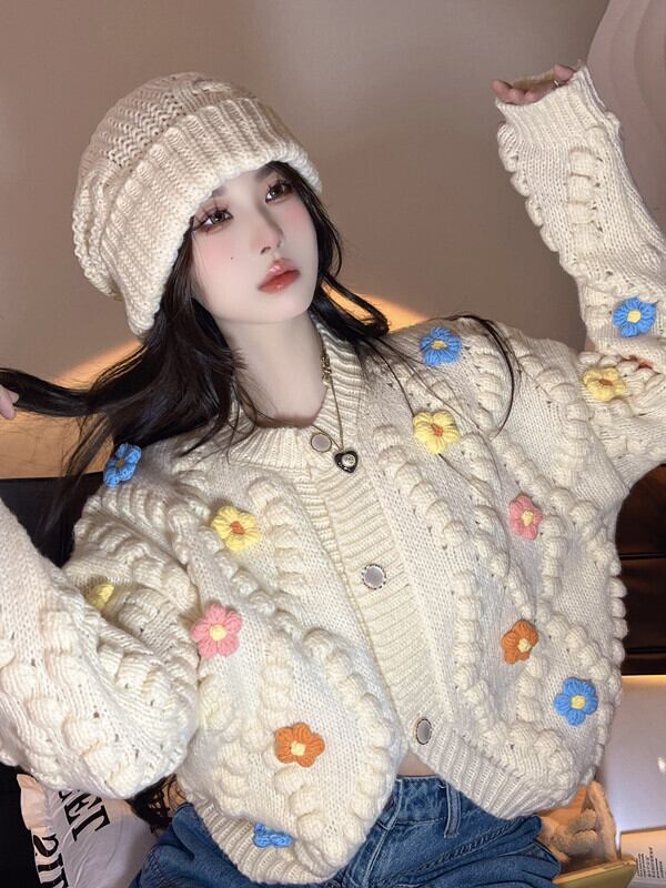 シックなデザインセンスの立体フラワーセーターコート女性の2023春の新しいスタイルのシックなルーズトップ スプリング 春物 フラワーデザイン 0921918278837841