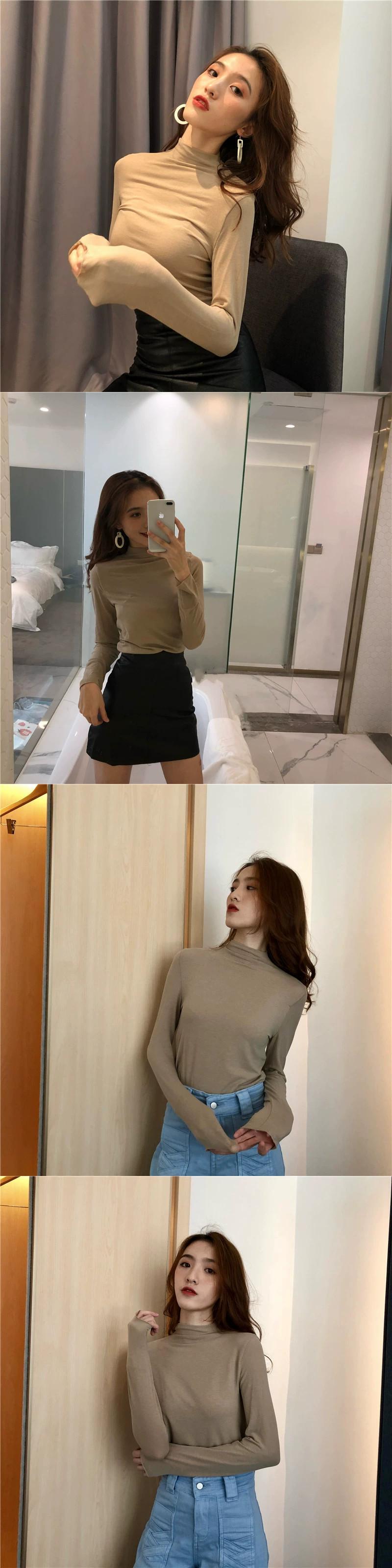 無地ハーフハイカラーニットTシャツレディース2023春新作自己修養ベーシックオールマッチ長袖ボトムストップ ロング スプリング 春物 ソリッドカラー 0921942111724097