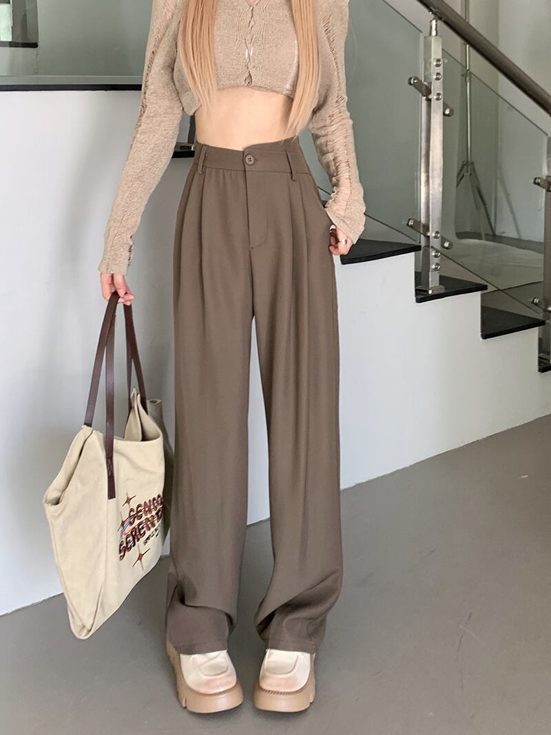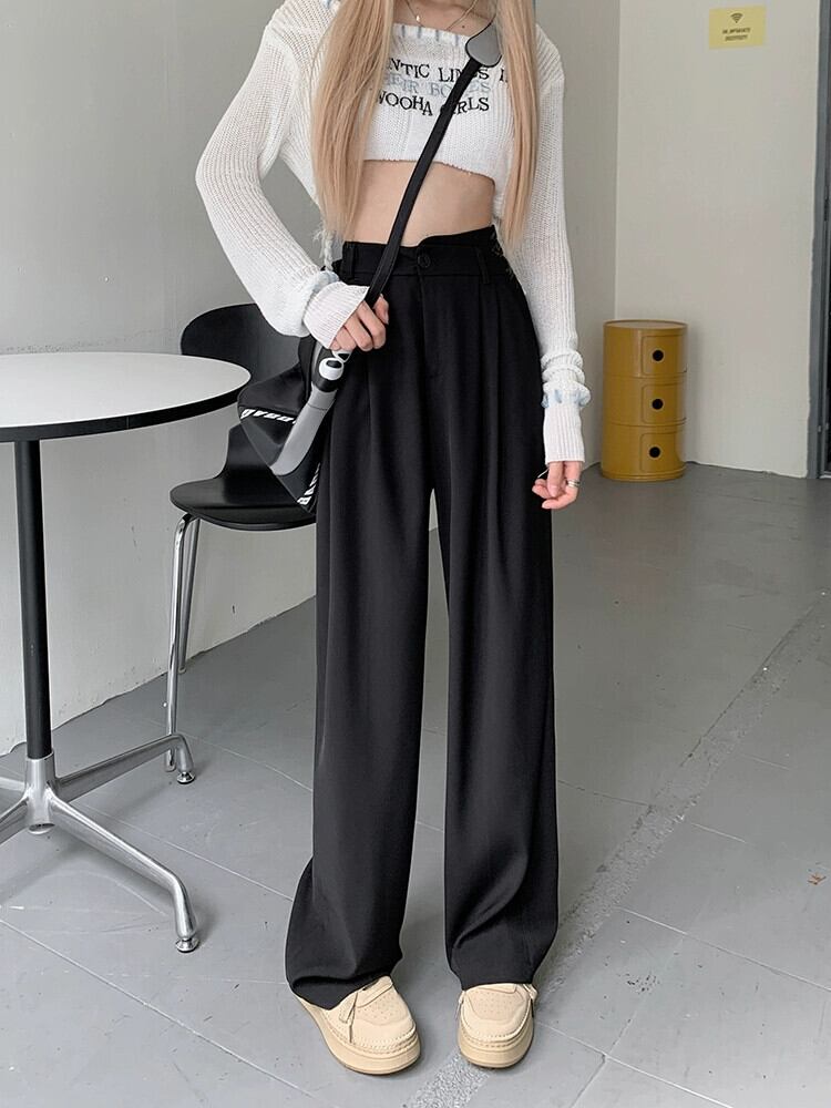 センスドレープストレートスーツカジュアルパンツレディース夏ルーズハイウエスト小さなワイドレッグパンツズボンズボン ハイウェスト サマー 夏物 ワイドパンツ 0921921059996576