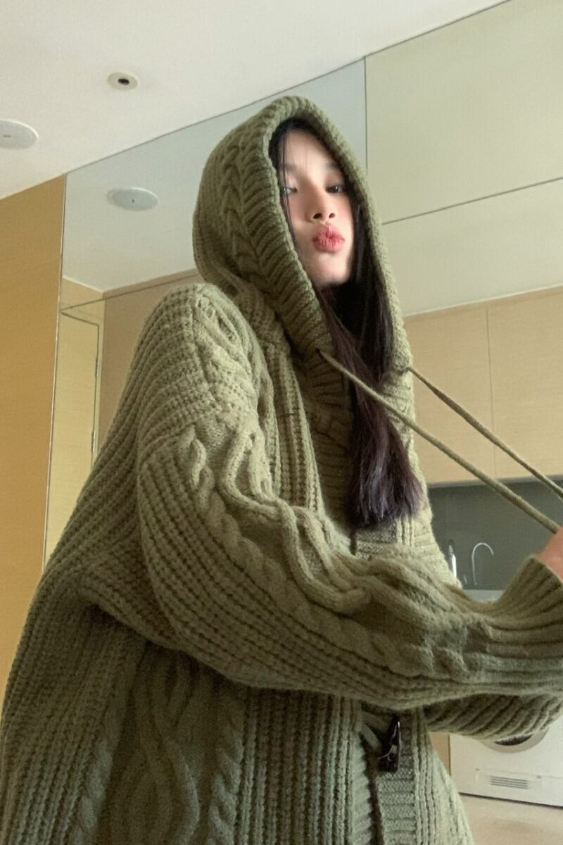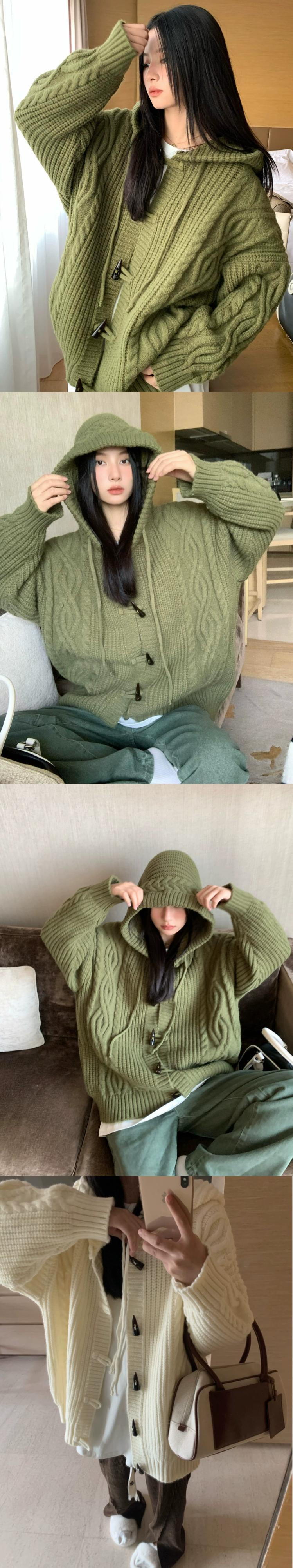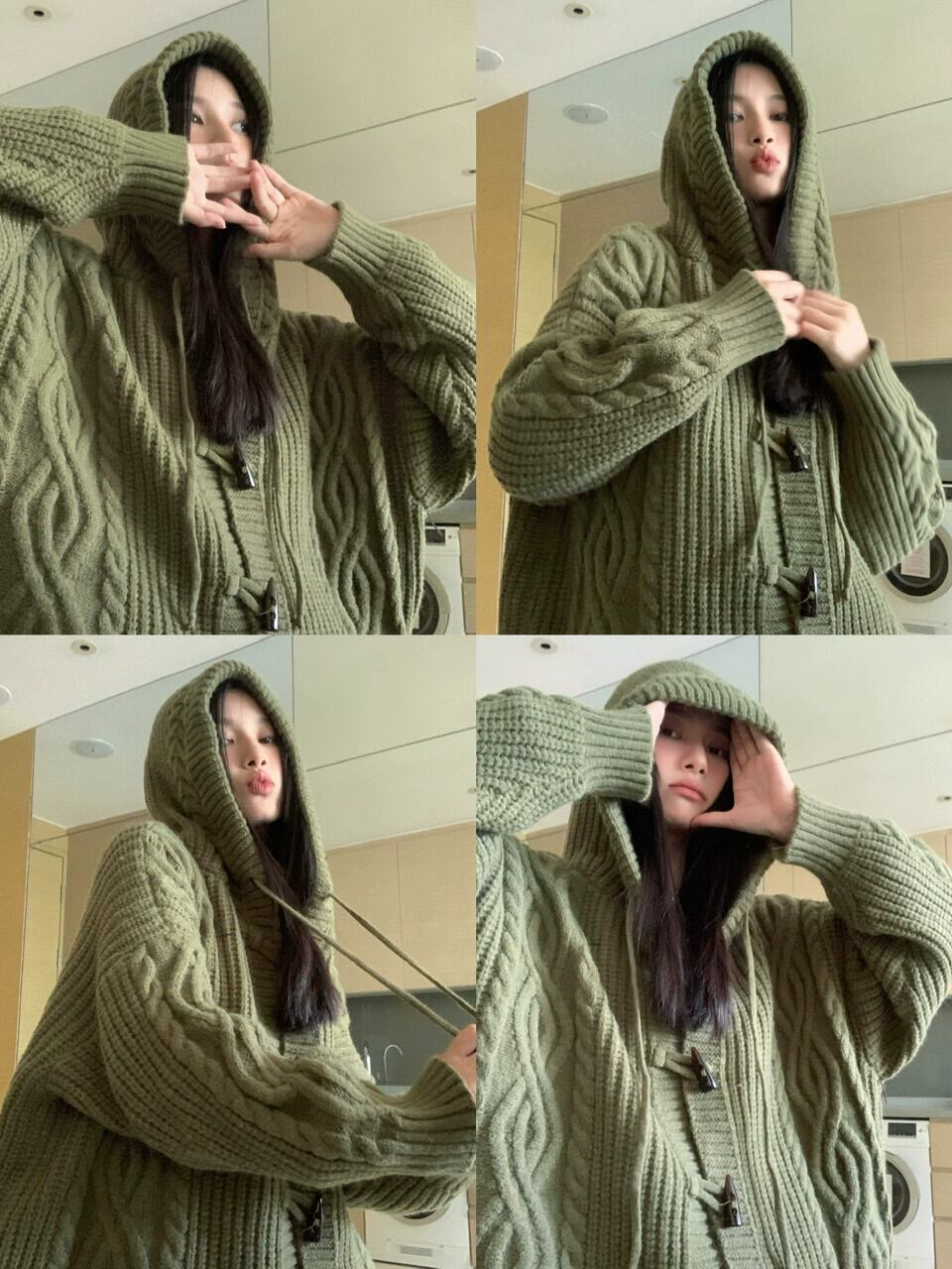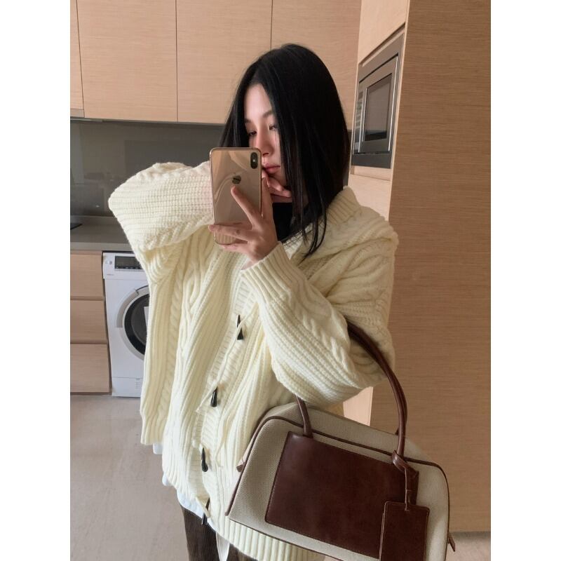 怠惰なスタイルのレトロなホーンボタンセータージャケット女性の春と秋 2023 新しい緩い薄い厚いニットカーディガン スプリング 春物 オータム 秋物 0921989384304141
