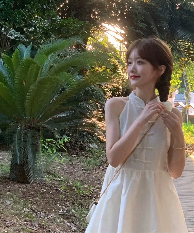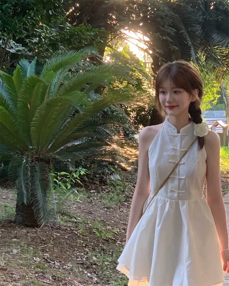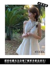 レトロな国民風スタンドカラーノースリーブドレス女性の夏 2023 新しいウエスト痩身甘いチャイナスカート 大人ガーリー スウィート キュート カジュアル サマー 夏物 0921997599762628