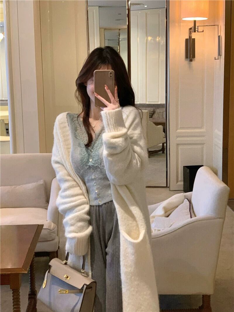 優しい風ソフトもちもちオールマッチセータージャケット女性春 2023 新バージョン白カジュアル怠惰なニットカーディガン ホワイト スプリング 春物 0921932110467651