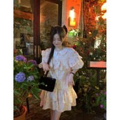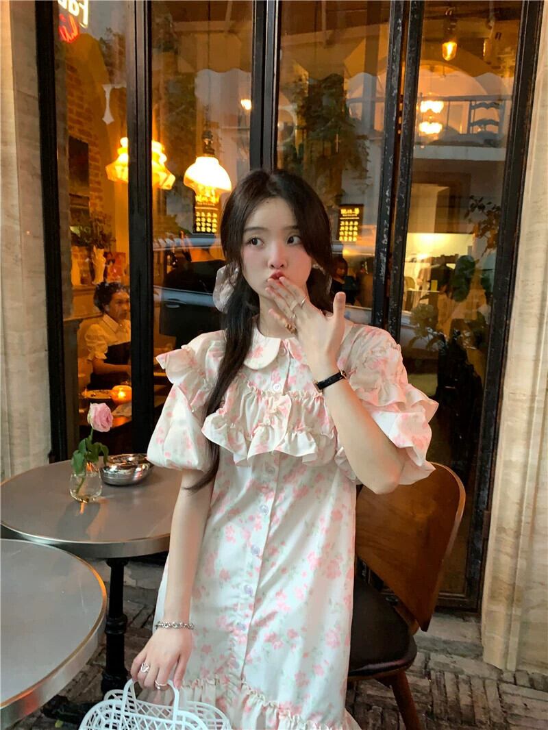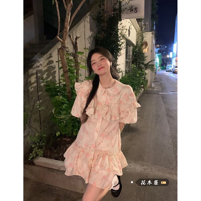 フレンチスタイルの美しいフリル花柄ドレスの女性の夏の 2023 新しいソフトで甘いスリム A ラインスカート ins 潮 大人ガーリー スウィート キュート カジュアル サマー 夏物 Aライン 0921987142666104