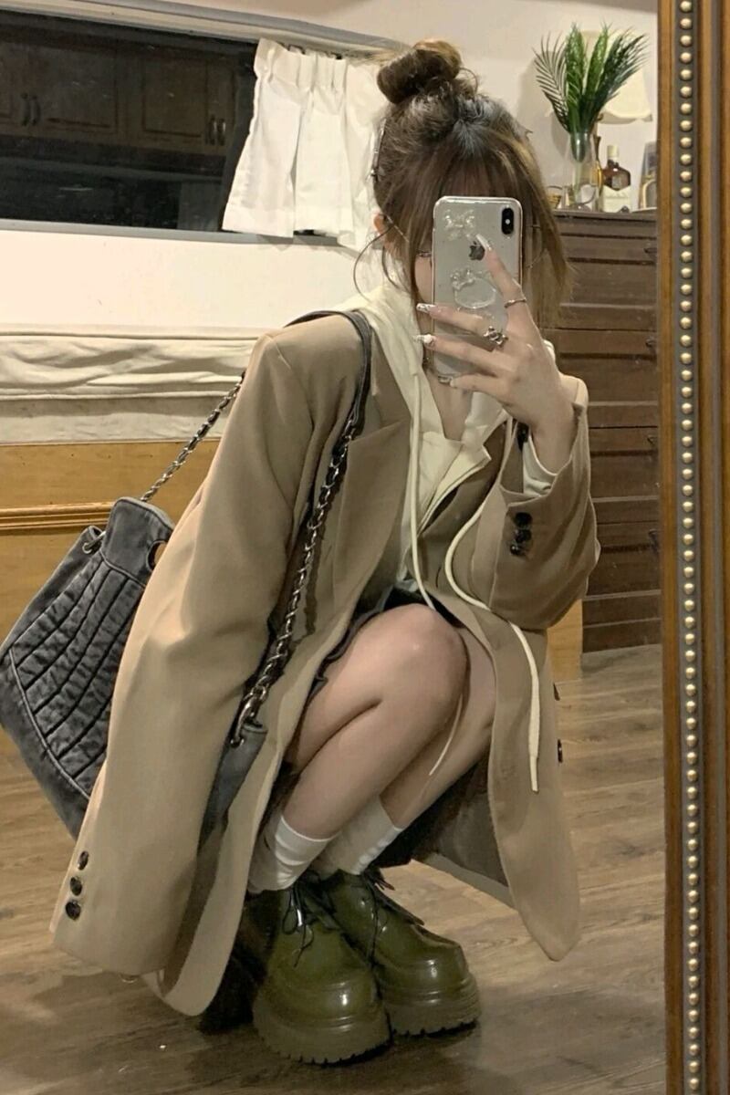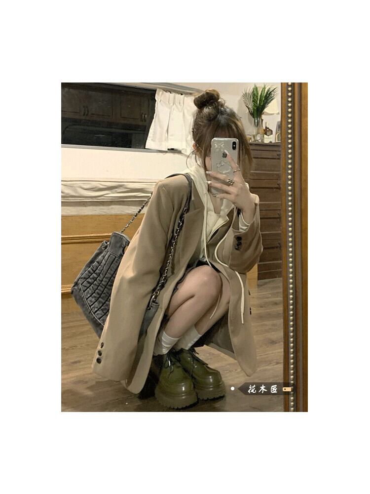 センスカジュアルファッションスーツ女性 2023 春の新スーツジャケットフード付きトッププリーツスカートスリーピーススーツ スプリング 春物 0921990652854400