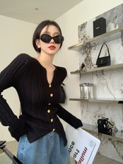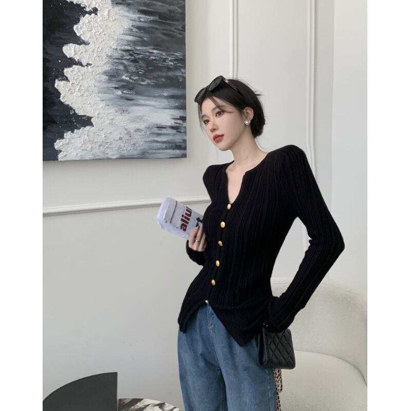 センス V ネック長袖ニットセーター女性の 2023 年春の新しい気質オールマッチ自己修養スリミングボトミングシャツトップ ロング スプリング 春物 Vネック 0921980477931337