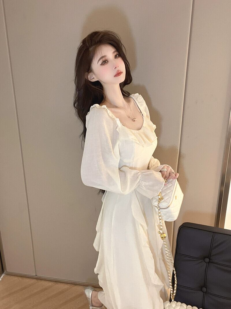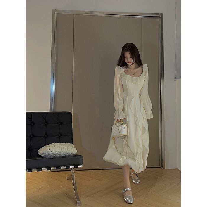 雰囲気優しい風ドレス女性 2023 春の新作ミドル丈蓮の葉エッジシックな妖精スカート スプリング 春物 0921996605902171