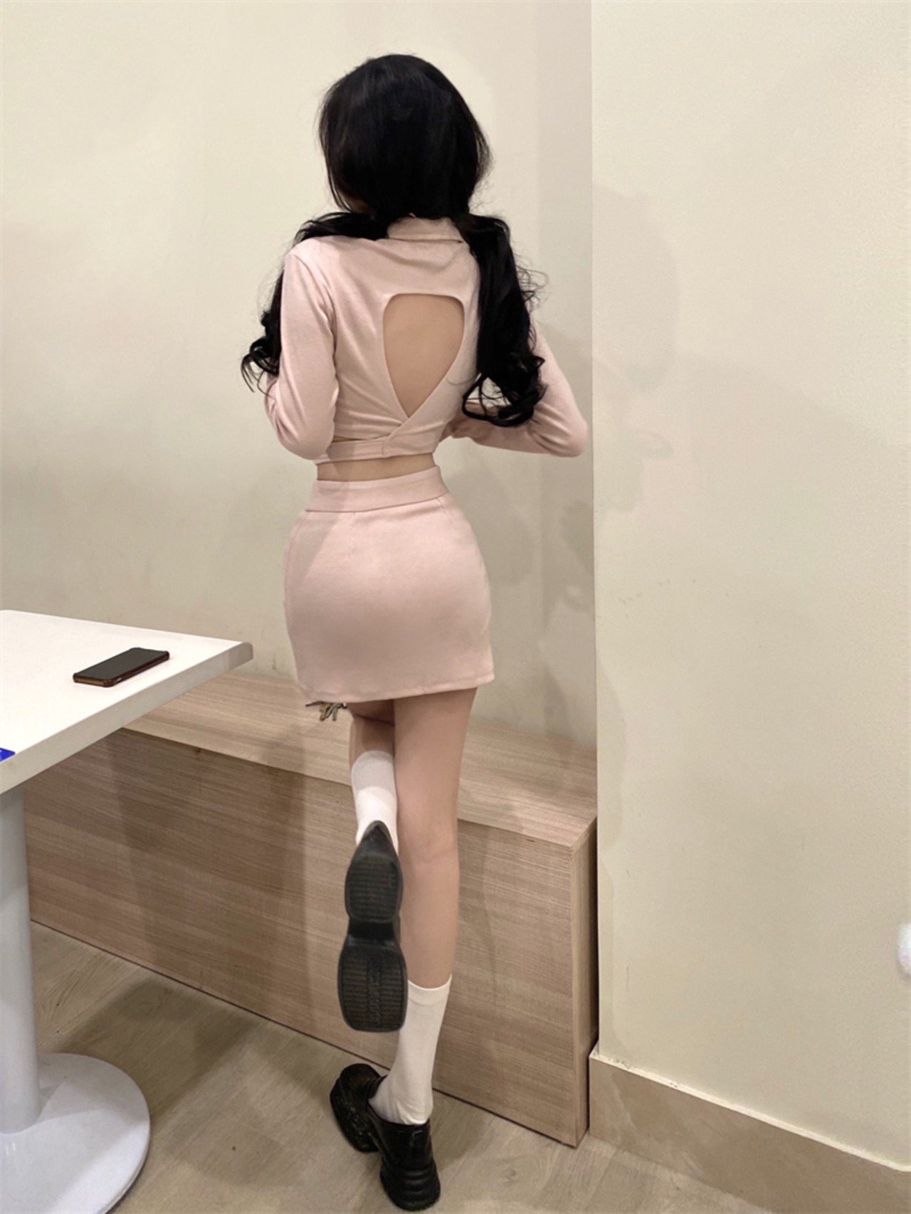 スイートカレッジウィンドスーツスカート女性 2023 春の新作長袖ポロカラートップハイウエストバッグヒップスカート 2 点セット ハイウェスト ロング 大人ガーリー スウィート キュート カジュアル スプリング 春物 0921961812349097