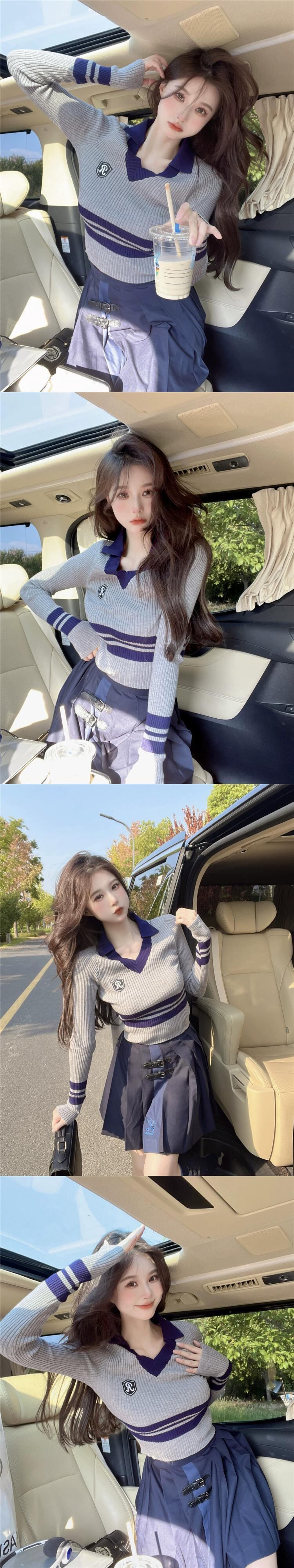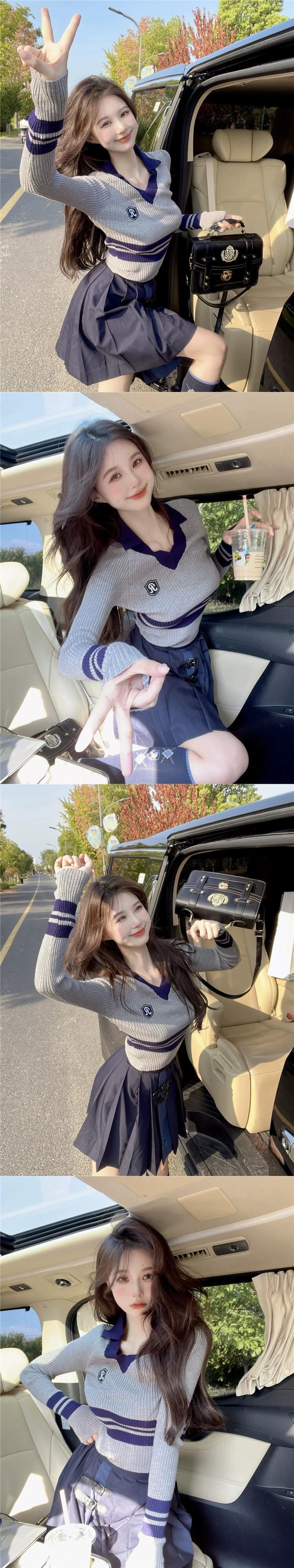 アメリカンカレッジスタイル長袖コントラストカラーVネックセーターレディース2023春新作気質スリムトップイン ロング スプリング 春物 0921948627532449