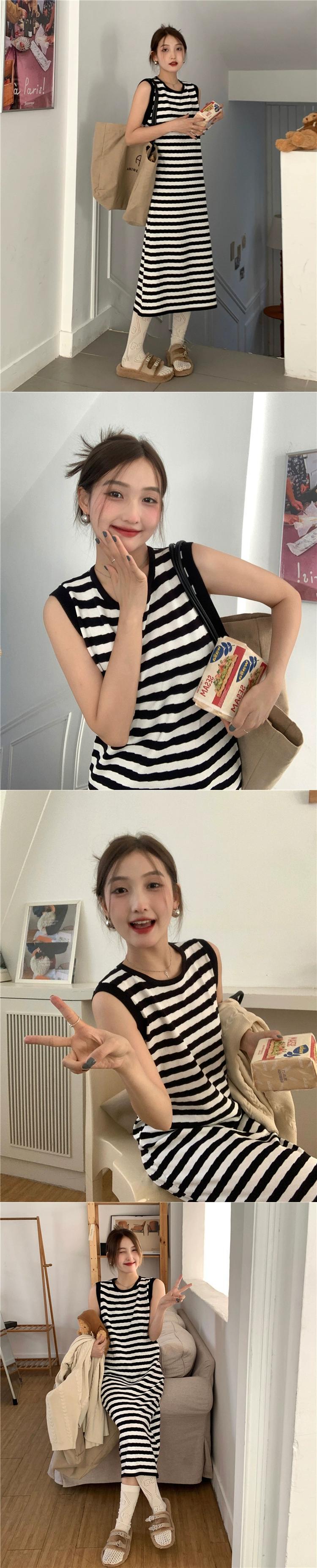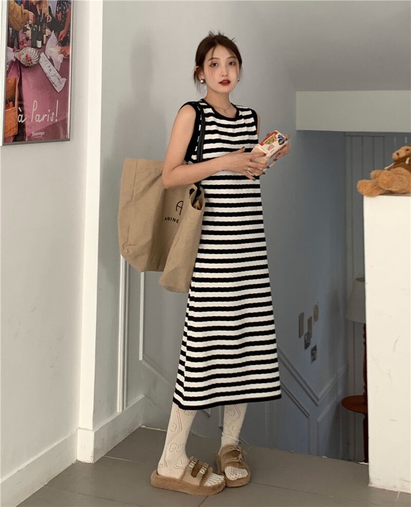 コントラストカラーストライプニットベストドレス女性の夏の 2023 新しいオールマッチデザイン感覚ルーズスリムミドル丈スカート サマー 夏物 0921999812250860