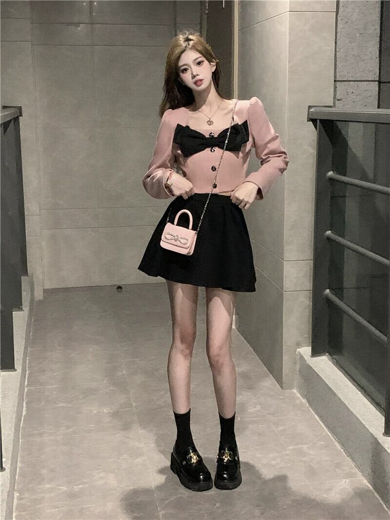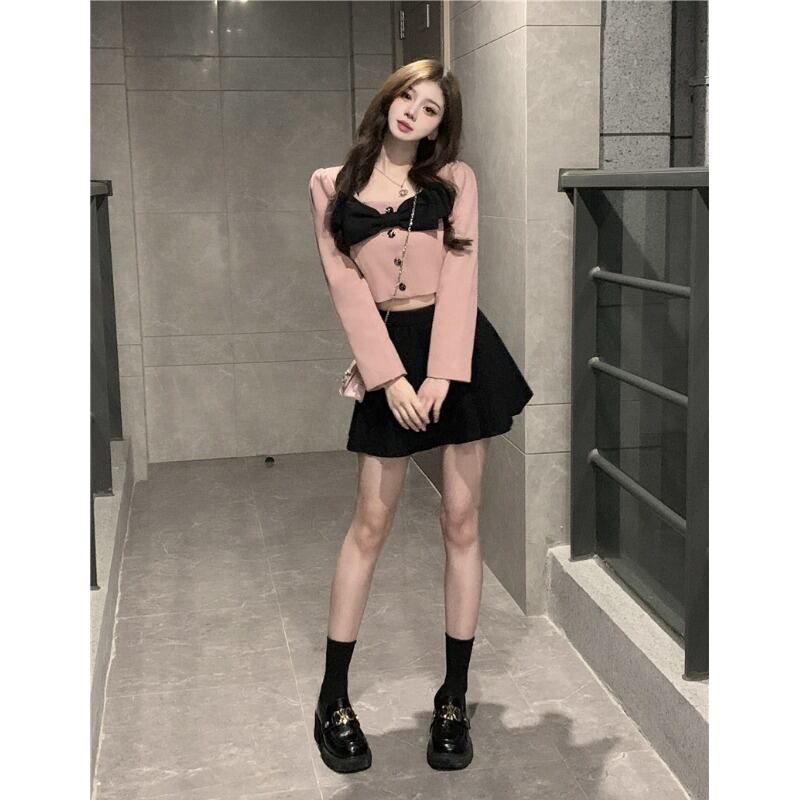 小さな香りのスタイル eign スタイルスーツスカート女性の夏の 2023 新しいボウトップ黒スカートツーピーストレンディ ブラック リボン サマー 夏物 0921957089426426