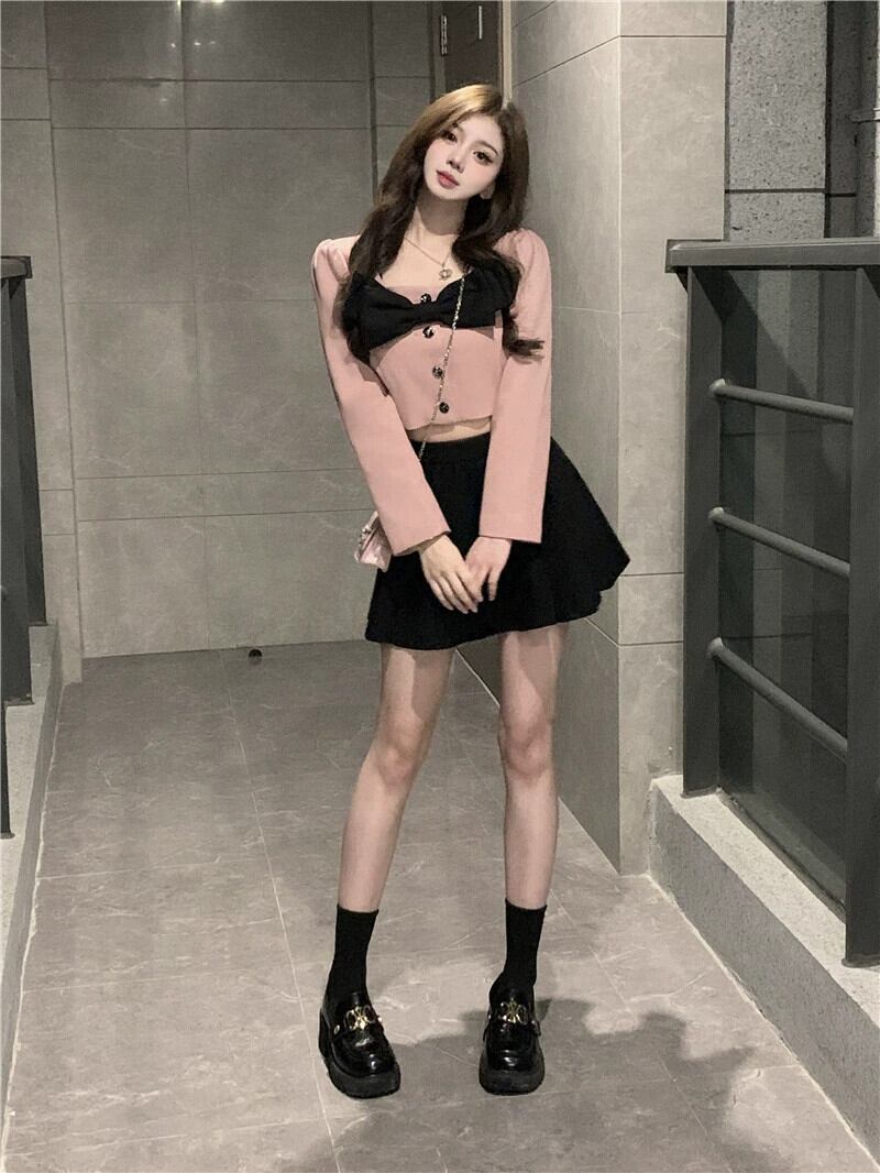 色:ピンクのワンピース,ブラックショートスカートワンピース