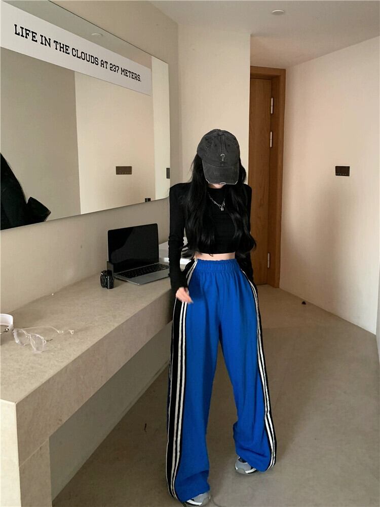 弾性ハイウエストルーズスリムドローストリングカジュアルパンツレディース2023年初春新作オールマッチデザインセンスワイドレッグモップパンツ ハイウェスト エラスティック 伸縮 スプリング 春物 0921941604792452