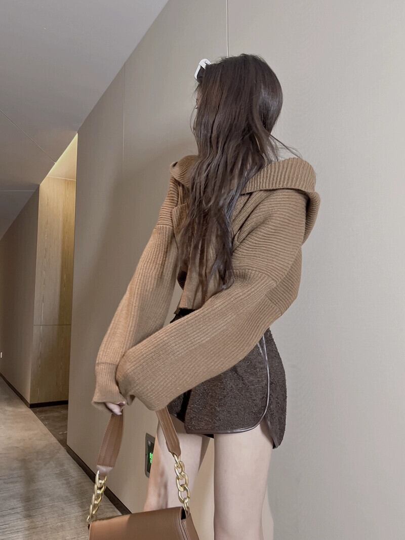 レトロ怠惰な風フード付きニットジャケット女性春と秋 2023 新しいオールマッチショートルーズ長袖セーターカーディガン ロング スプリング 春物 オータム 秋物 0921996178075297