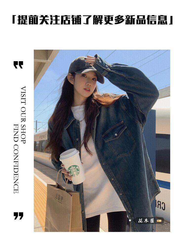 万能デザインルーズ長袖デニムシャツレディース2023春新作ミドル丈スリムカーディガンシャツ ロング スプリング 春物 0921927074085668
