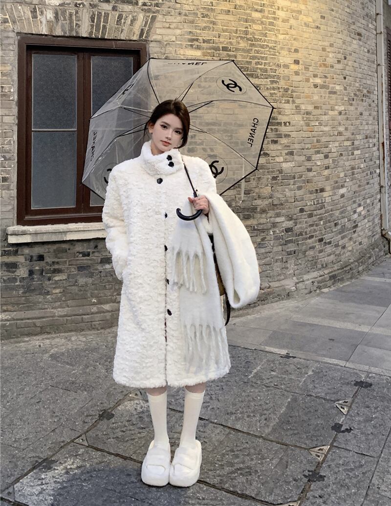 怠惰な風模造ラムウールスタンドカラーウールコート女性の冬の 2023 新しい暖かいオールマッチ毛皮綿コート コットン ウィンター 冬物 0921963274979249