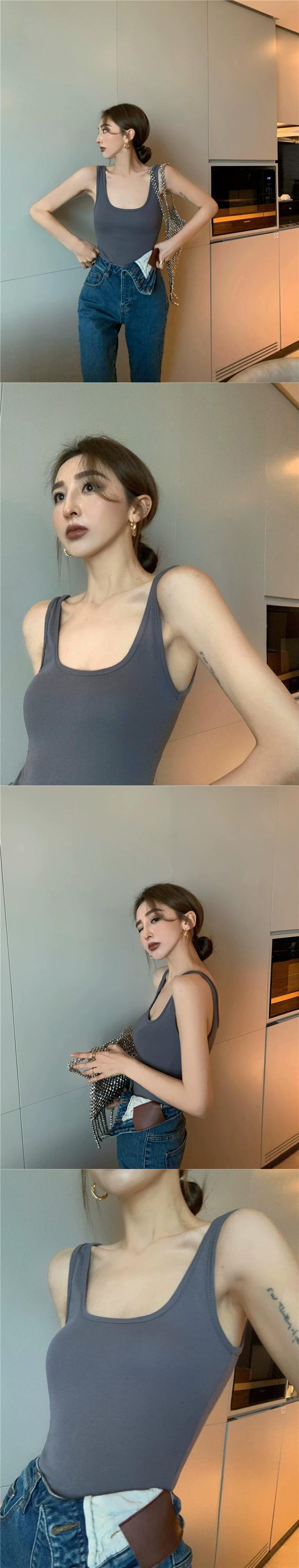 純粋な欲望スタイルタイトニットキャミソール女性の夏の背中の開いたセクシーなインナーウェアアウターウェアボトミングシャツトップ サマー 夏物 0921927130861758