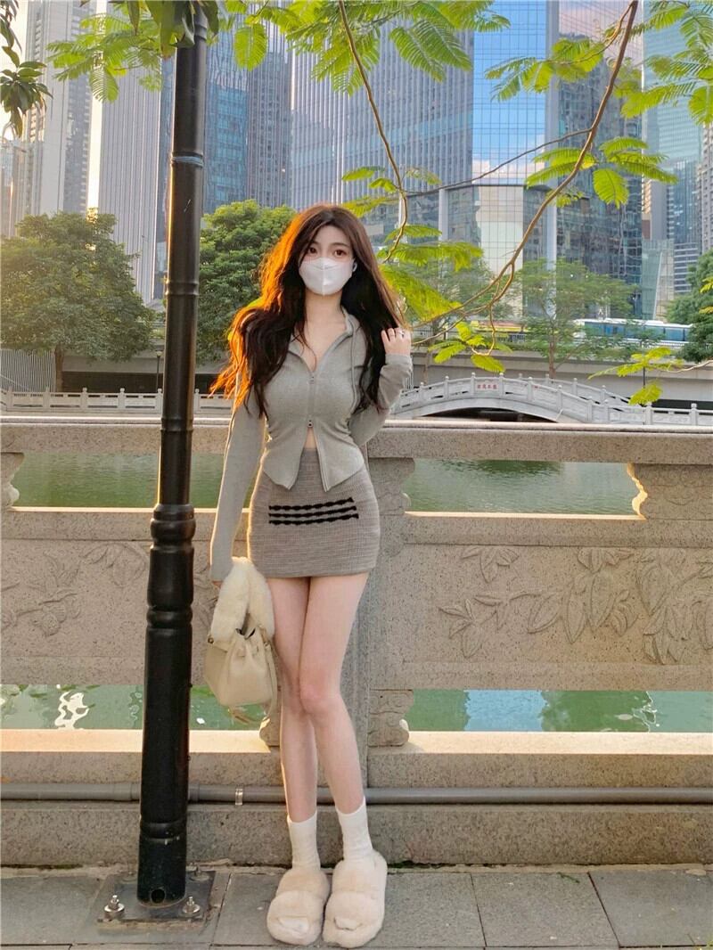 センスファッションスーツ女性の 2023 春の新作ダブルジッパーショートトップ A ラインバッグアームスカート 2 点セット スプリング 春物 Aライン 0921910602519964