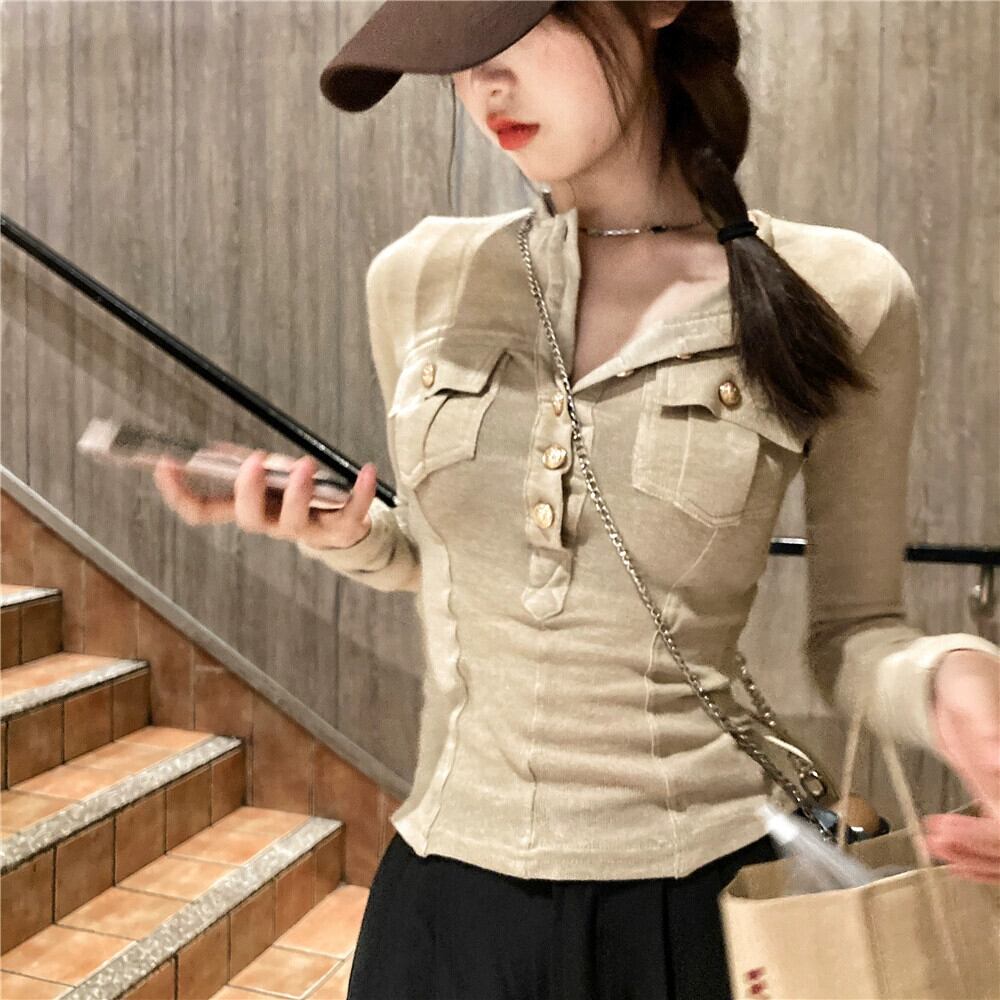 純粋な欲望スタイルスリム弾性長袖ニットセーター女性の 2023 年春の新バージョンオールマッチ薄型トップトレンド ロング エラスティック 伸縮 スプリング 春物 0921935687239762