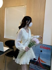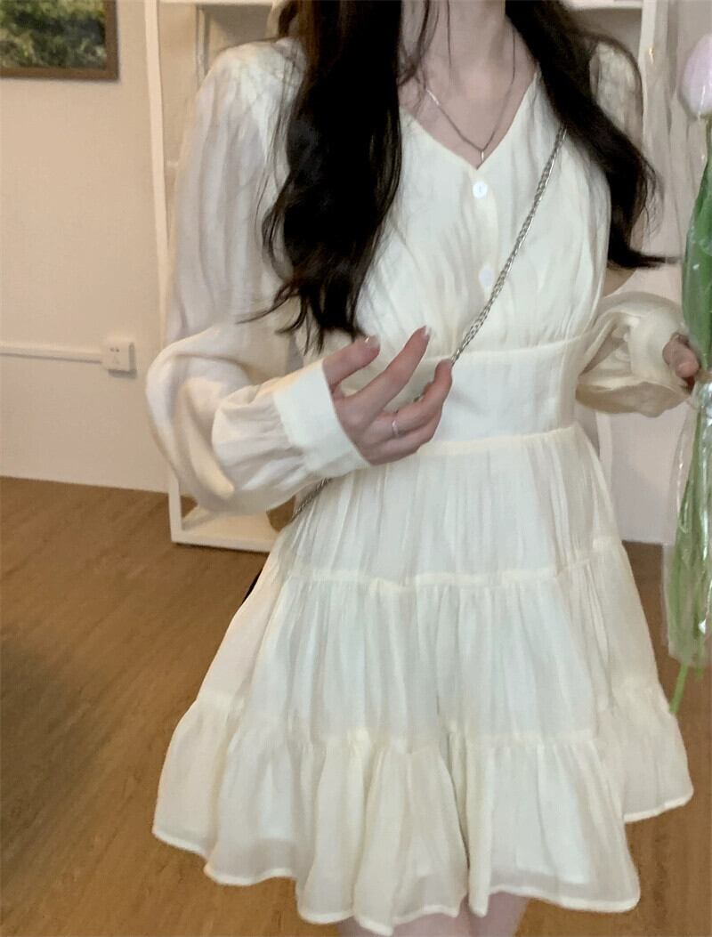 フランスの初恋スタイル長袖プリーツドレス女性の夏の 2023 新しいウエストウエスト痩身と年齢削減オールマッチプリーツスカート ロング サマー 夏物 0921931580529238