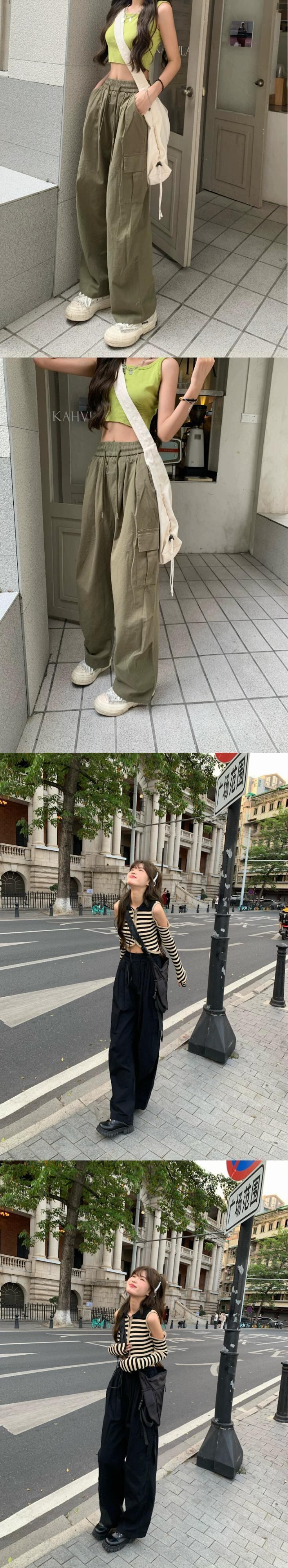 アメリカンレトロツーリングカジュアルパンツレディース2023夏新作ゆったり薄手ワイドパンツハイウエストロングパンツ ハイウェスト サマー 夏物 0921941478451839