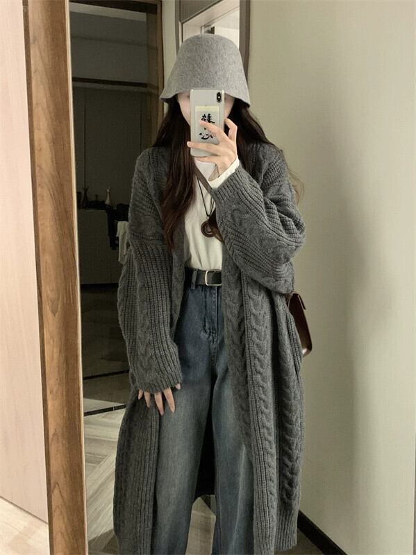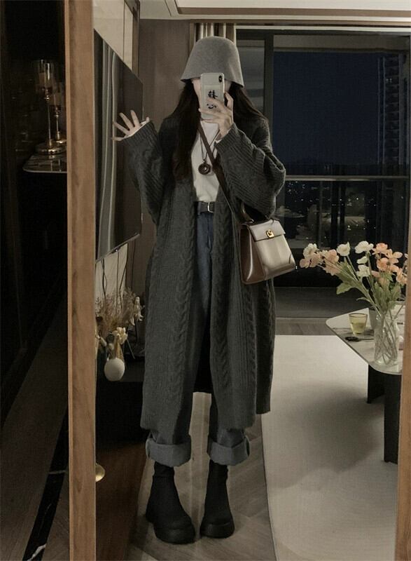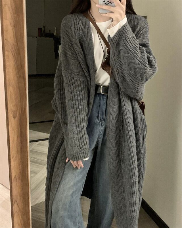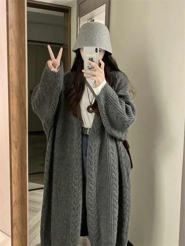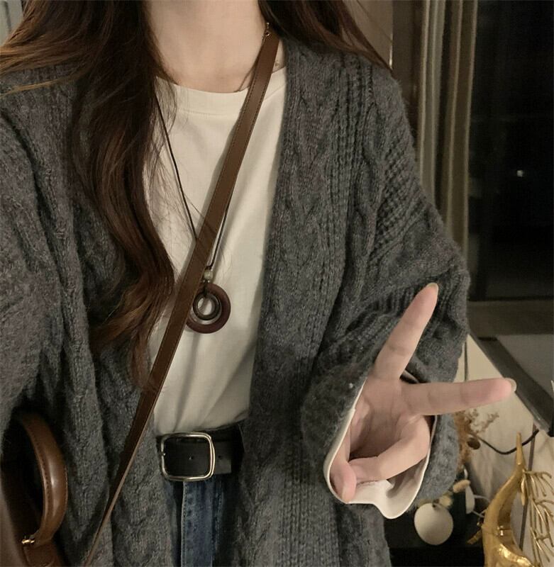 レトロ怠惰なスタイルルーズ eign スタイルセーターコート女性春と秋 2023 新しいオールマッチミッドレングスニットカーディガン潮 スプリング 春物 オータム 秋物 0921953611188195