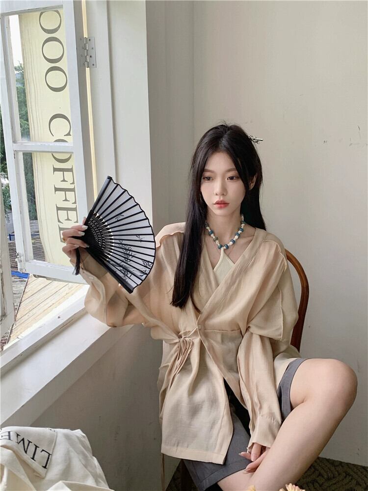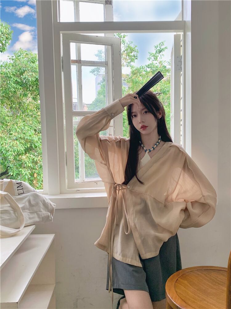 中国風薄い日焼け止めシャツ女性の 2023 夏の新しいネットレッドデザインセンスストラップルーズ長袖トップ潮 ロング サマー 夏物 0921994685461128