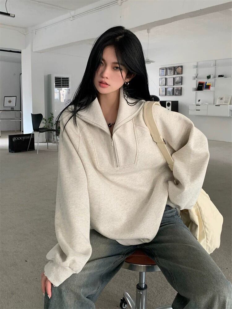 バージョン シンプルで多用途のルーズ ラペル グレー プルオーバー セーター レディース 2023 春の新しいシックなミッドレングス トップ スプリング 春物 0921950746681330
