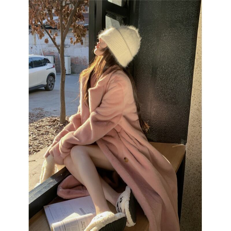 -エンドピンクウールコートレディース2023年春新作気質オールマッチミドル丈ルーズウールコート スプリング 春物 0921973075076145
