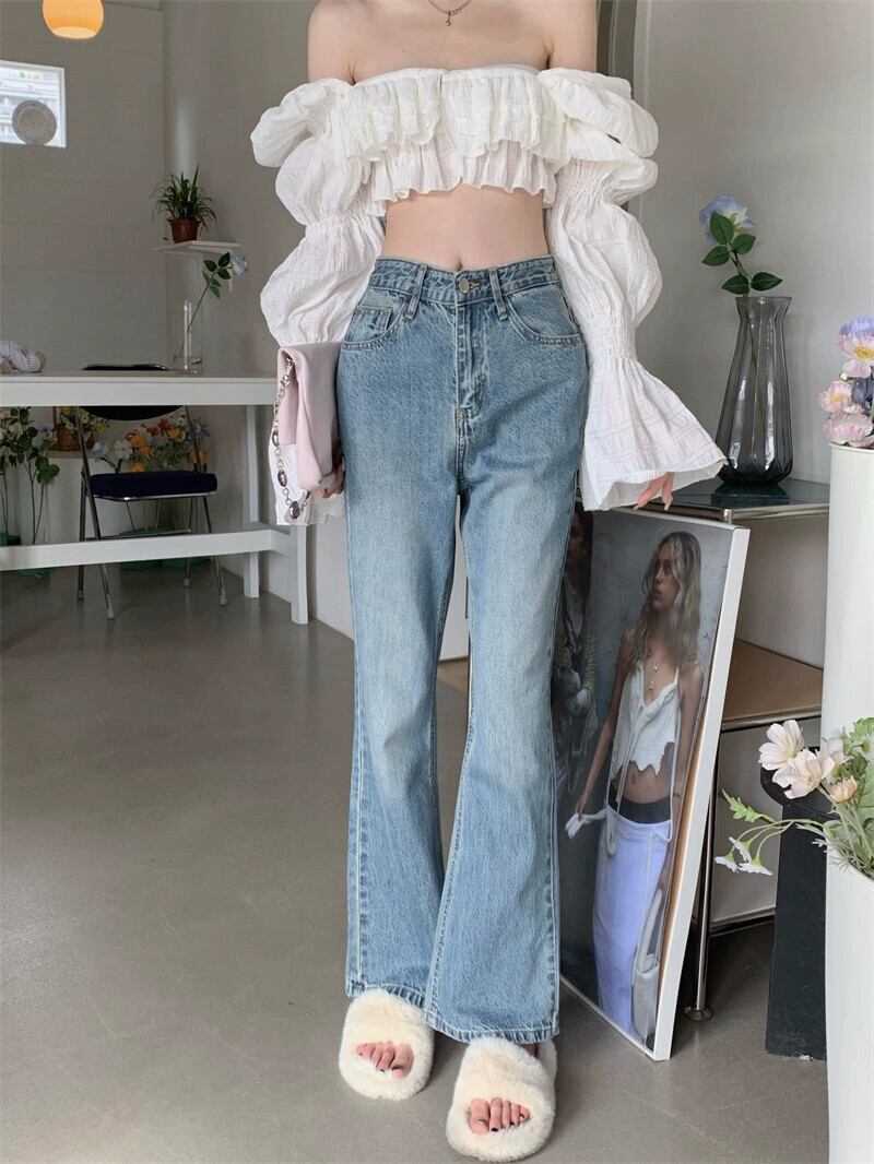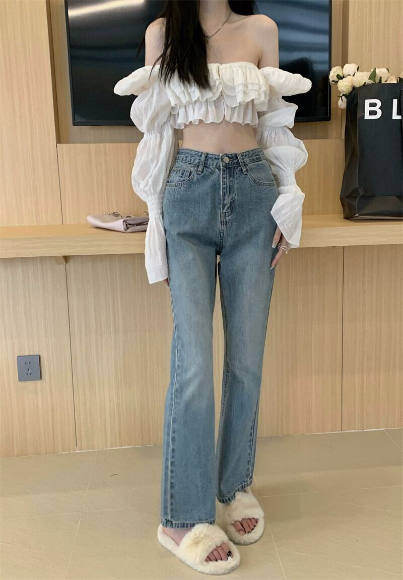 インターネット有名人の人格ローエッジポケットウォッシュジーンズ女性の夏の 2023 新しいハイウエストスリムスリムパンツ ハイウェスト サマー 夏物 0921977902916923