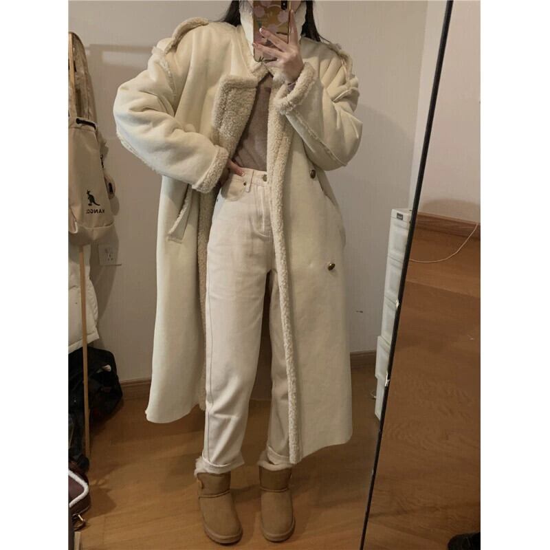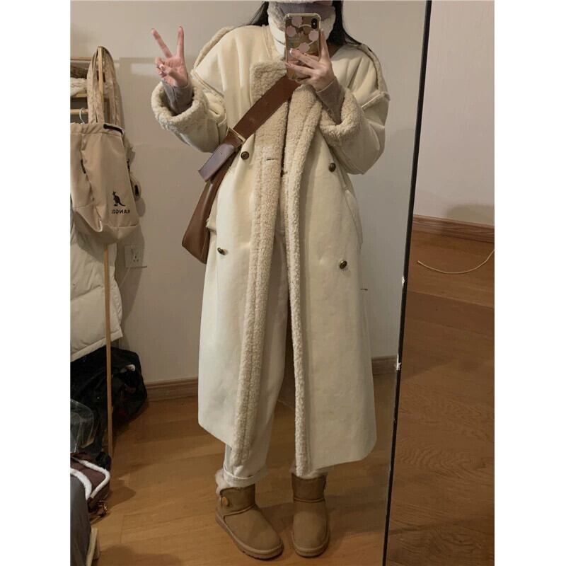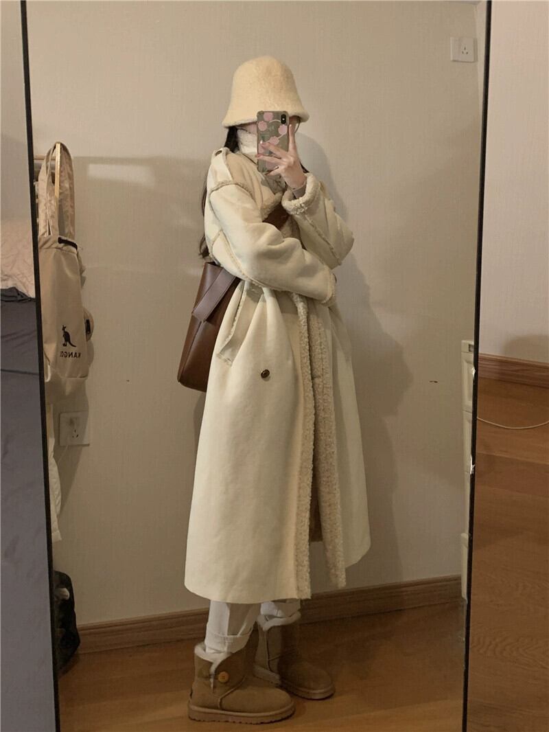 バージョン模造ラムウール綿ジャケット女性の春と秋の 2023 新しい厚みのあるミッドレングス長袖毛皮のコート ロング コットン スプリング 春物 オータム 秋物 0921946014007386