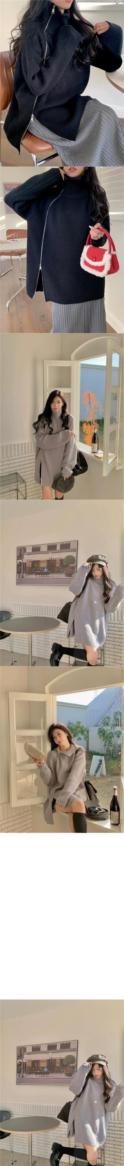 垂直パターンハイカラー斜めジッパー厚いプルオーバーセーター女性春と秋 2023 新しいオールマッチルーズミッドレングストップ潮 スプリング 春物 オータム 秋物 0921980615575643
