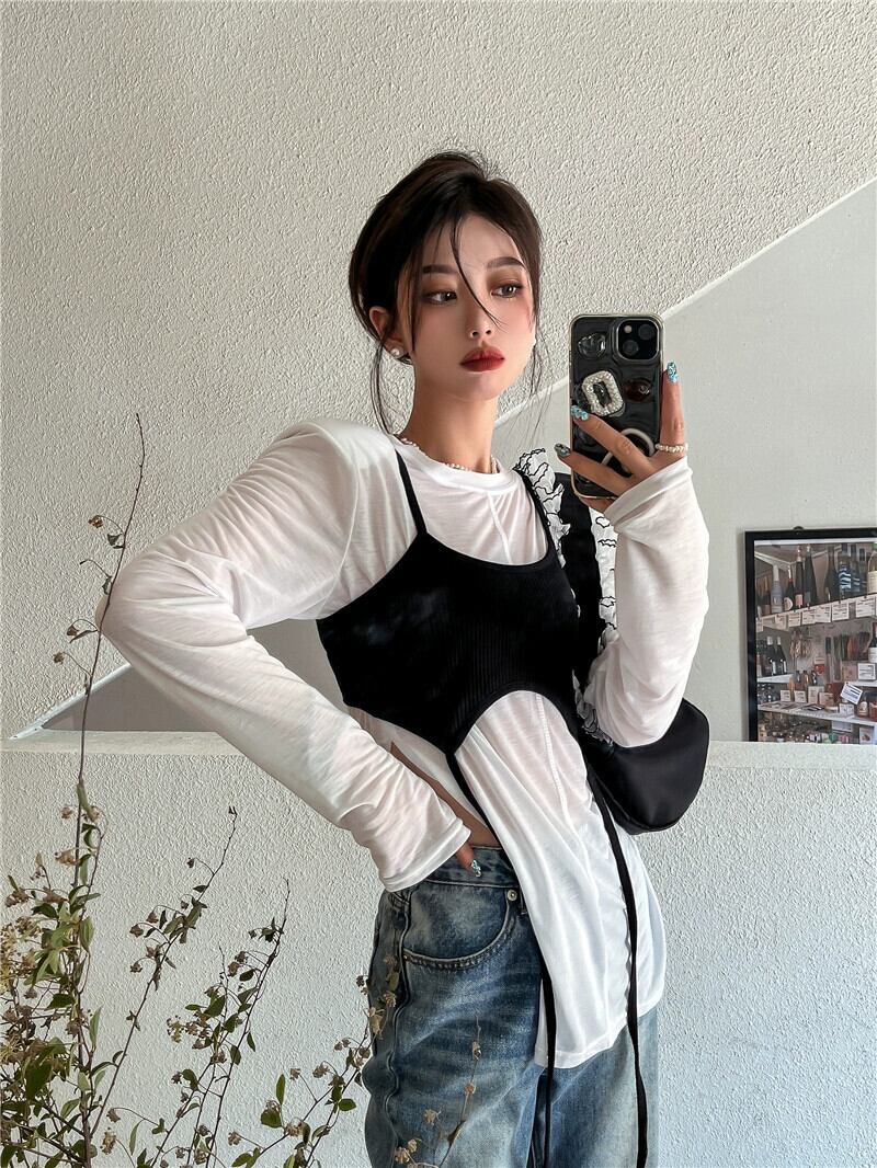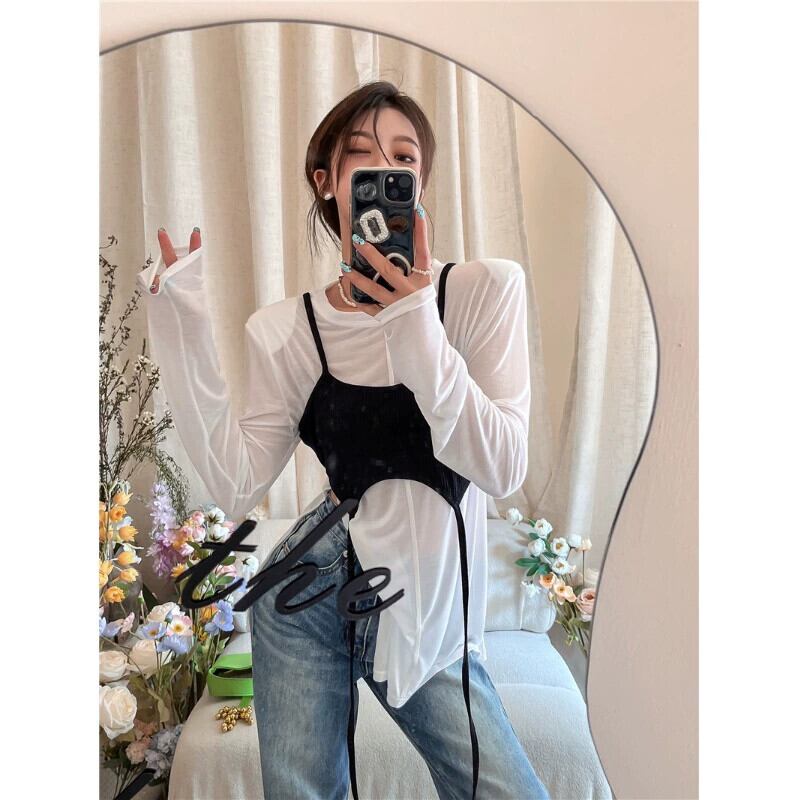 香港スタイルのデザインセンスファッションスーツ女性 2023 春の新作ルース日焼け止めシャツスリムキャミソール 2 点セット スプリング 春物 0921968887704225