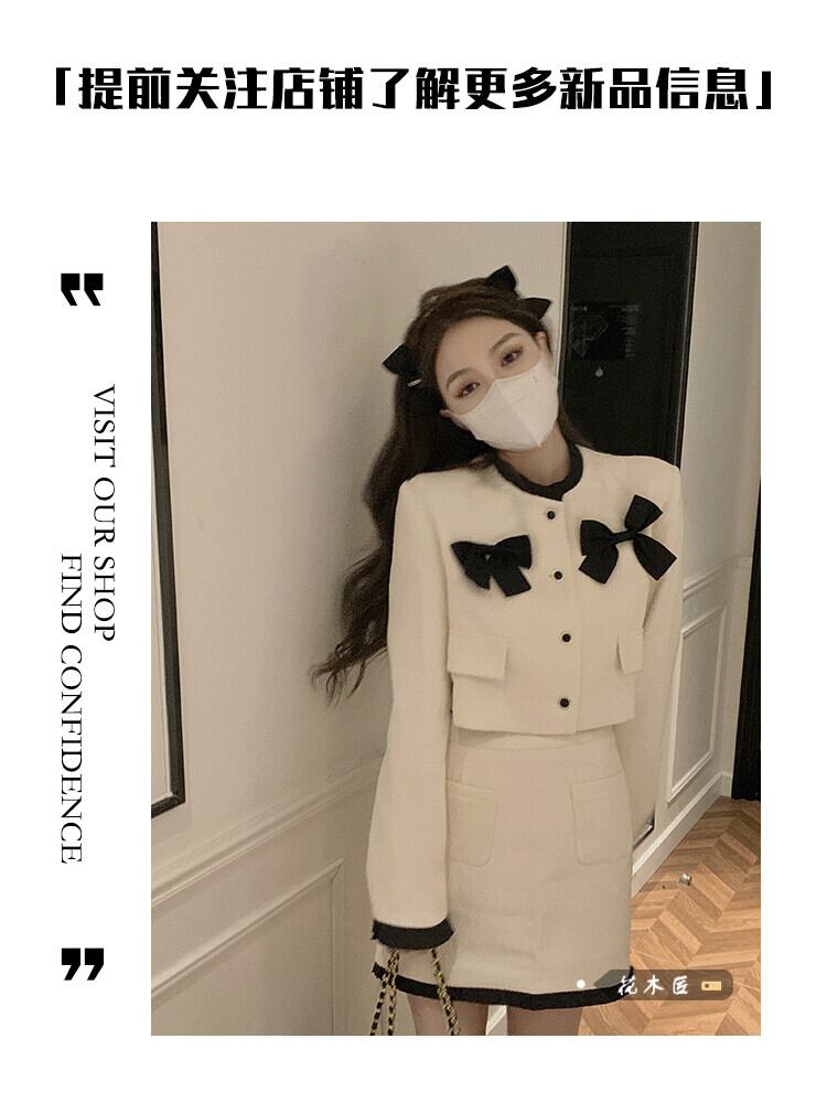 スタイル Qianjin Xiaoxiang 風スーツスカート女性の冬 2023 新しいちょう結びコートトップスカート 2 点セット リボン ウィンター 冬物 0921934443039489